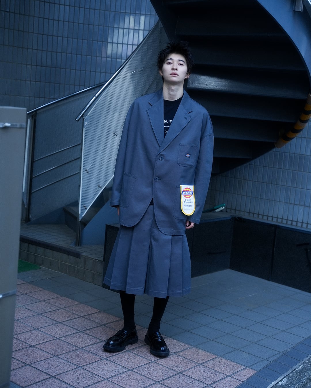 定番の「HIS」シルエットをベースに、Dickiesと協業した一着。 肩線を大きく落とし、身幅を過剰に取ることで生まれる独特の余白は、サイズアップによる誇張ではなく、最初から完成されたバランスとして構築されています。 そのシルエットにDickiesのT/Cツイルというワークウェア由来の素材を掛け合わせることで、輪郭の強いシルエットを保ち、着用時にも“らしさ”が崩れません。 ジャケットとしての顔をもちながらも、着心地と佇まいはアウターに近く、寒さの残る春先にはインナーにニットやフーディを合わせたレイヤードも楽しめます。