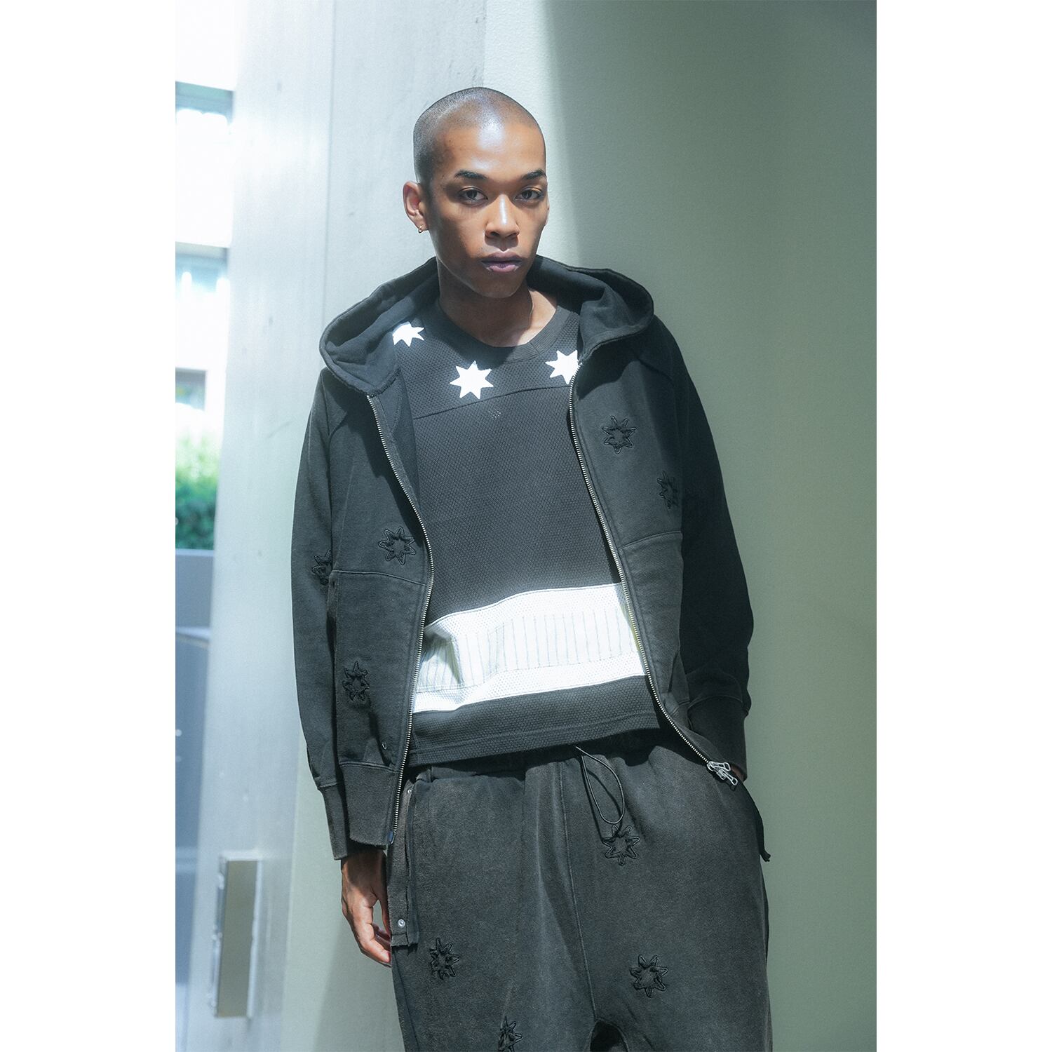 東京発のクリエイティブユニットYouthQuakeに所属する荒井一帆と高林司が手がけるユニセックスブランド FAKE AS FLOWERS / FAF(フェイクアスフラワーズ / エフエーエフ)。肥大する都市と自然とのコントラストをテーマに、音楽やアート、スピリチュアルな要素を巧みに融合させた、日本人らしい繊細さが光る大胆なクリエイションを展開。