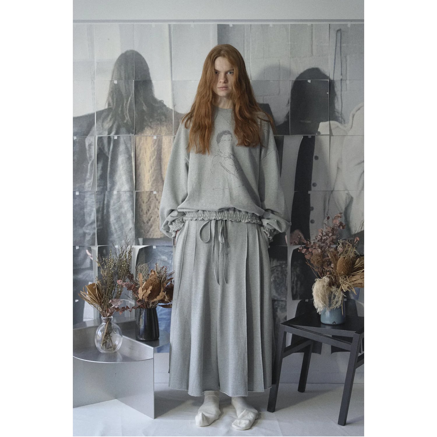 スコットランドのキルトスカートをイメージしたタックパンツ。腰回りから裾にかけてゆったりと広がるシルエットが特徴で、歩くたびに生地が揺れ、スカートのような奥行きある動きを生み出します。大胆ながらも上品さを備えたシルエットで、存在感のある一本に仕上がっています。生地はタオルのようなパイル編みで空気を含みやすく、ふんわりとした肌触りが特徴。