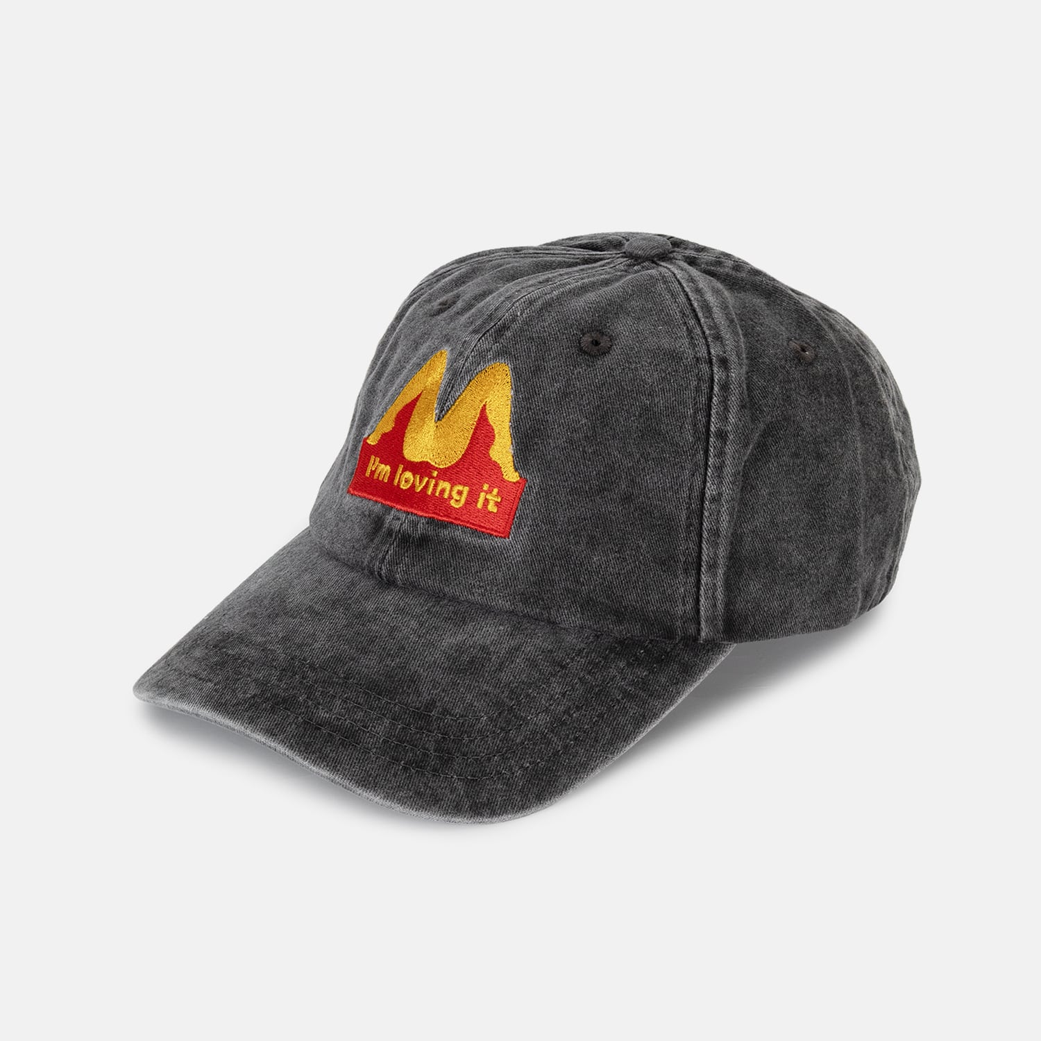 某ハンバーガーチェーンのロゴを大胆にサンプリング。カルネボレンテらしいユーモアを落とし込んだ刺繍キャップ。