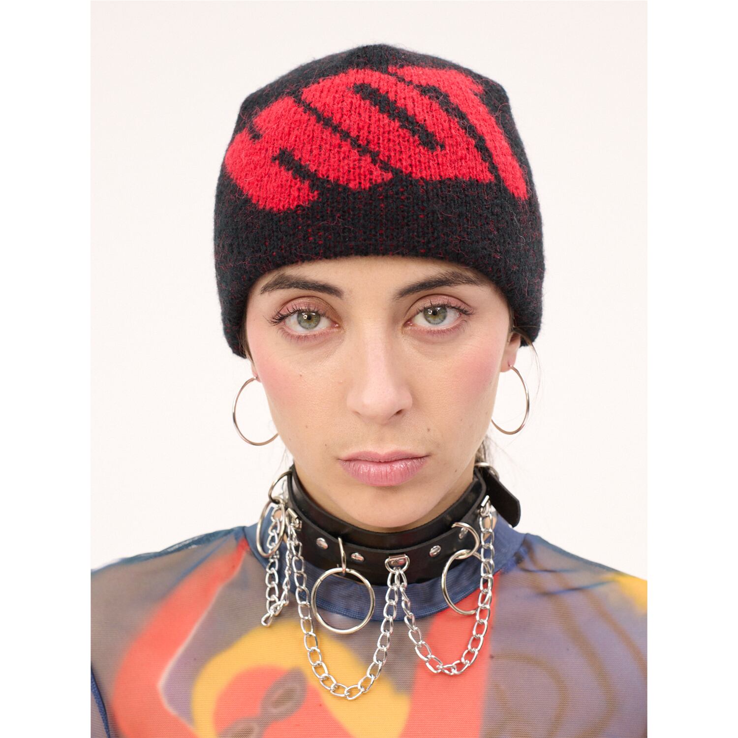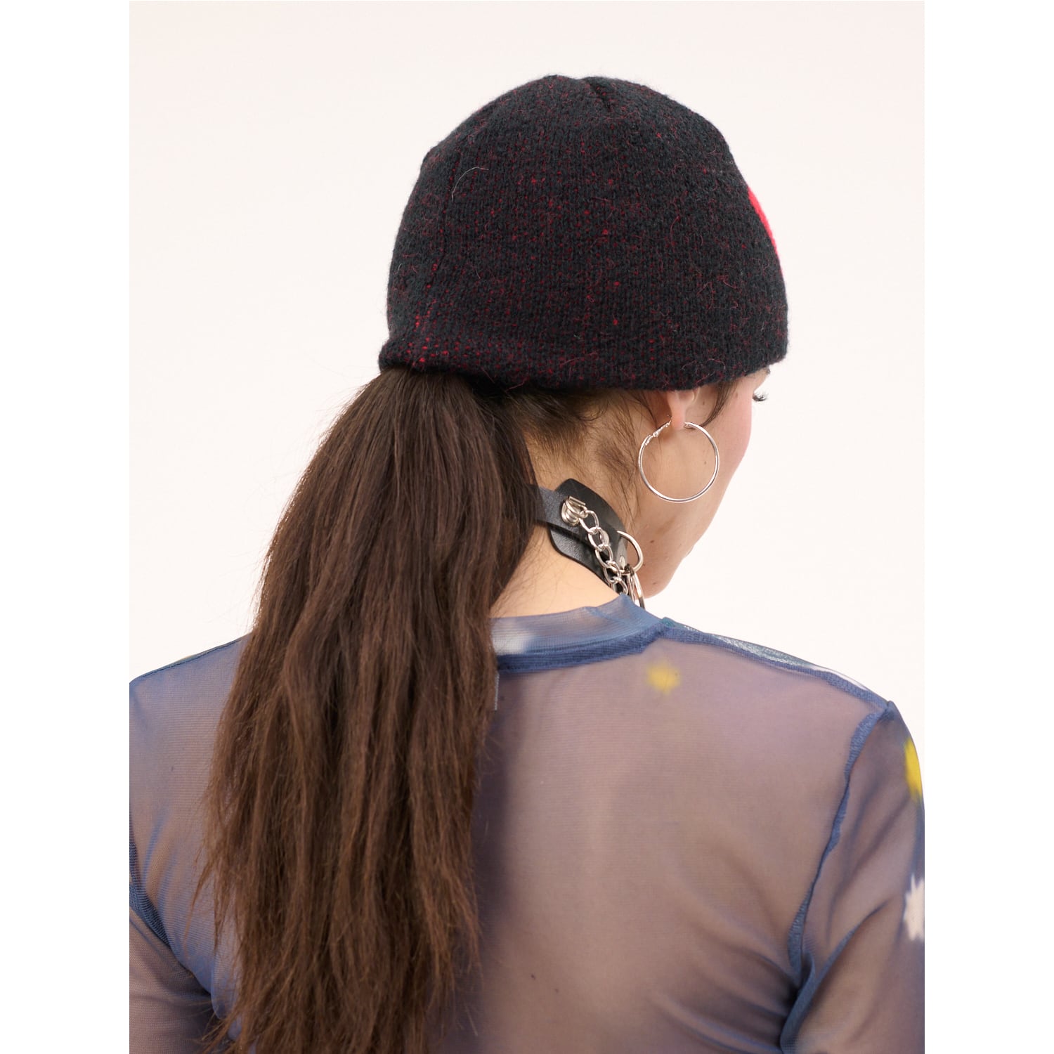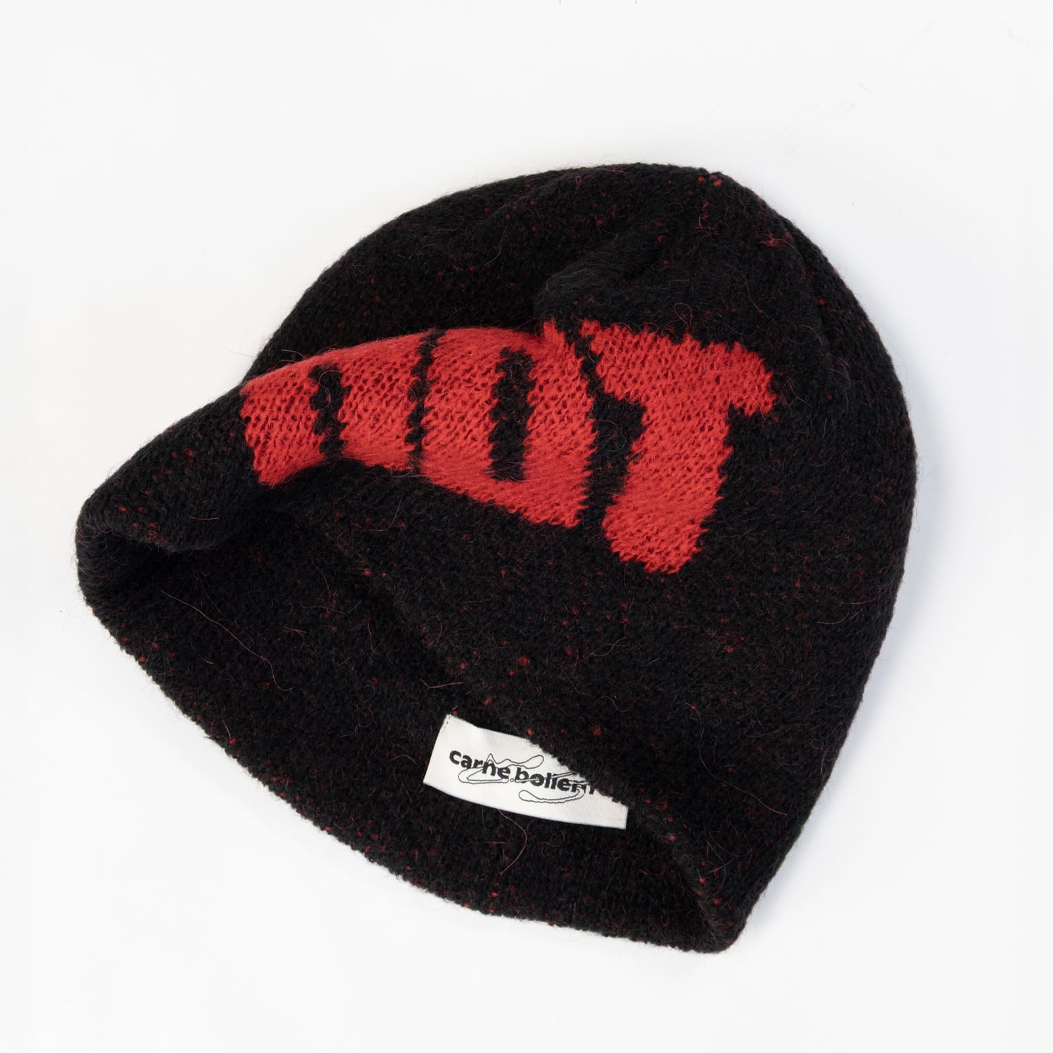織りで表現された「HOT」のグラフィック。アルパカ混のニットでふんわり暖かいです。