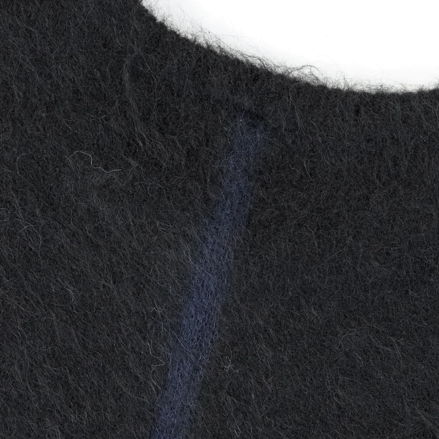 アルパカやモヘアをブレンドした毛足のある糸を使用し、軽さと温かさを兼ね備えた柔らかな着心地に仕上げています。フロントには氷上に立つペンギン。ただの動物柄ではなく、ペンギンを通じて人間の姿やユーモラスな孤独を描いています。裾と袖はリブを付けないラフな仕立てで、レイヤードにも馴染みやすいデザインです。