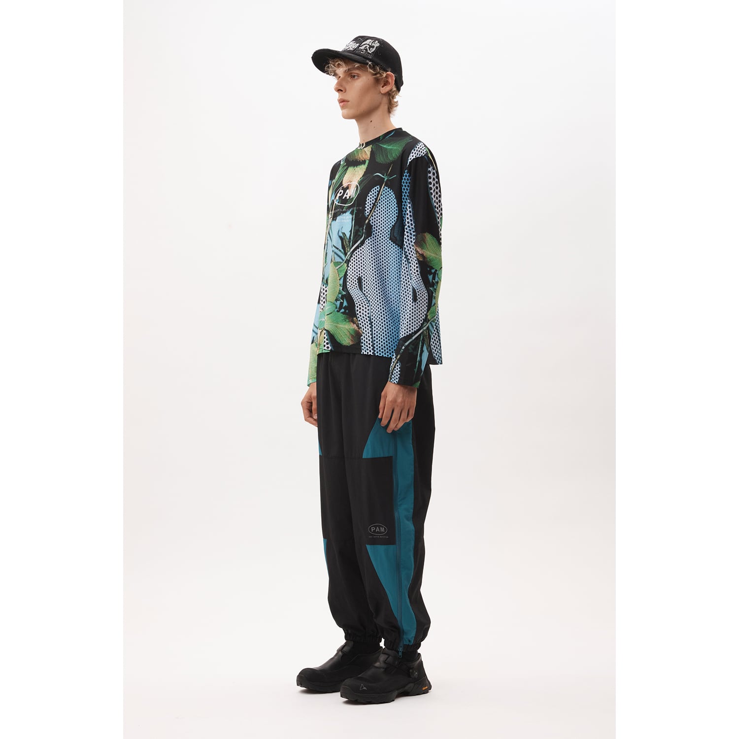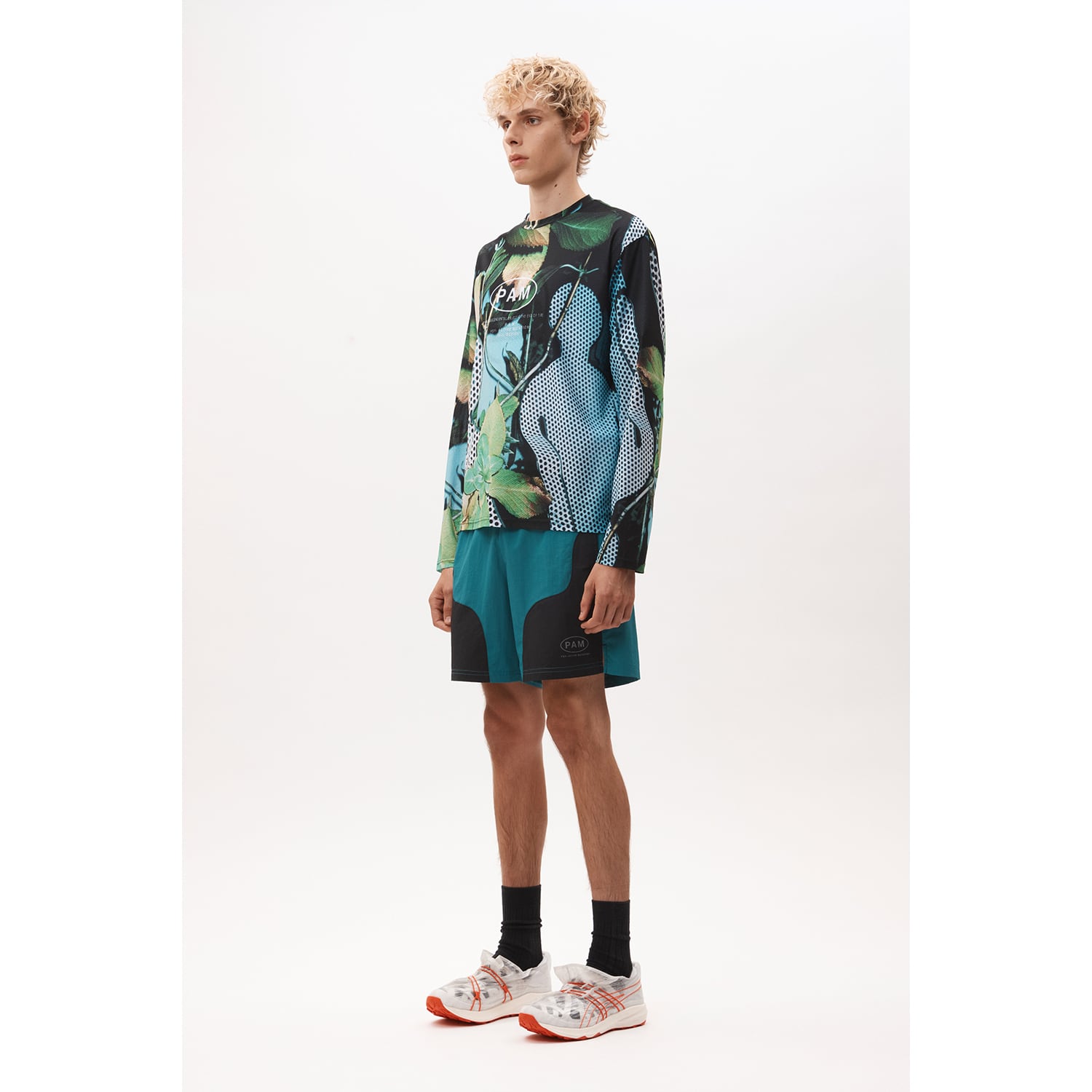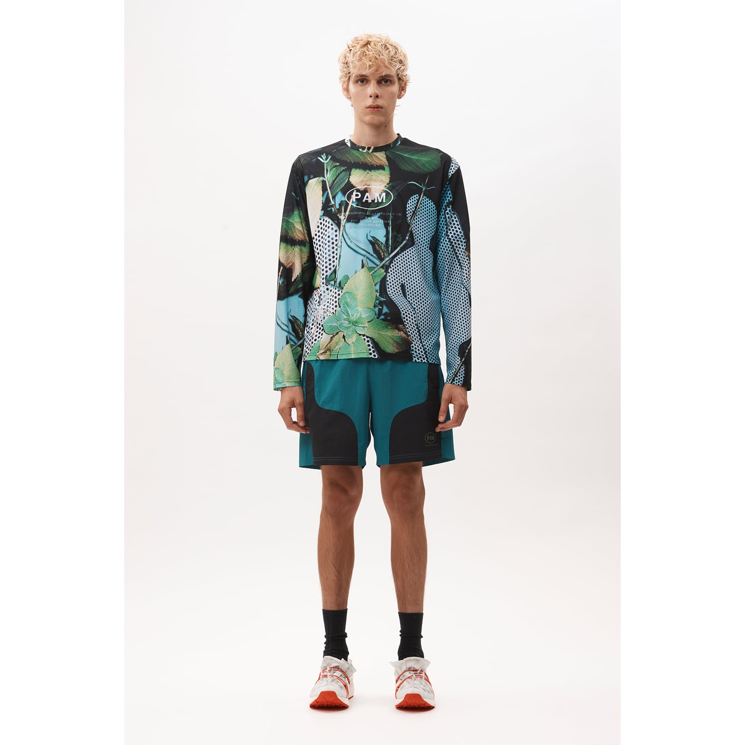 PAMならではのグラフィカルなアートワークを落とし込んだロングスリーブトップ。シングルレイヤーのメッシュ素材を採用し、軽やかな着心地と通気性を確保しています。袖と裾にはツインニードルカバーステッチを施し、耐久性と洗練された仕上がりを両立。伸縮性があり動きやすく、単体での着用はもちろん、ジャケットやシャツのインナーとしても活躍する一枚です。