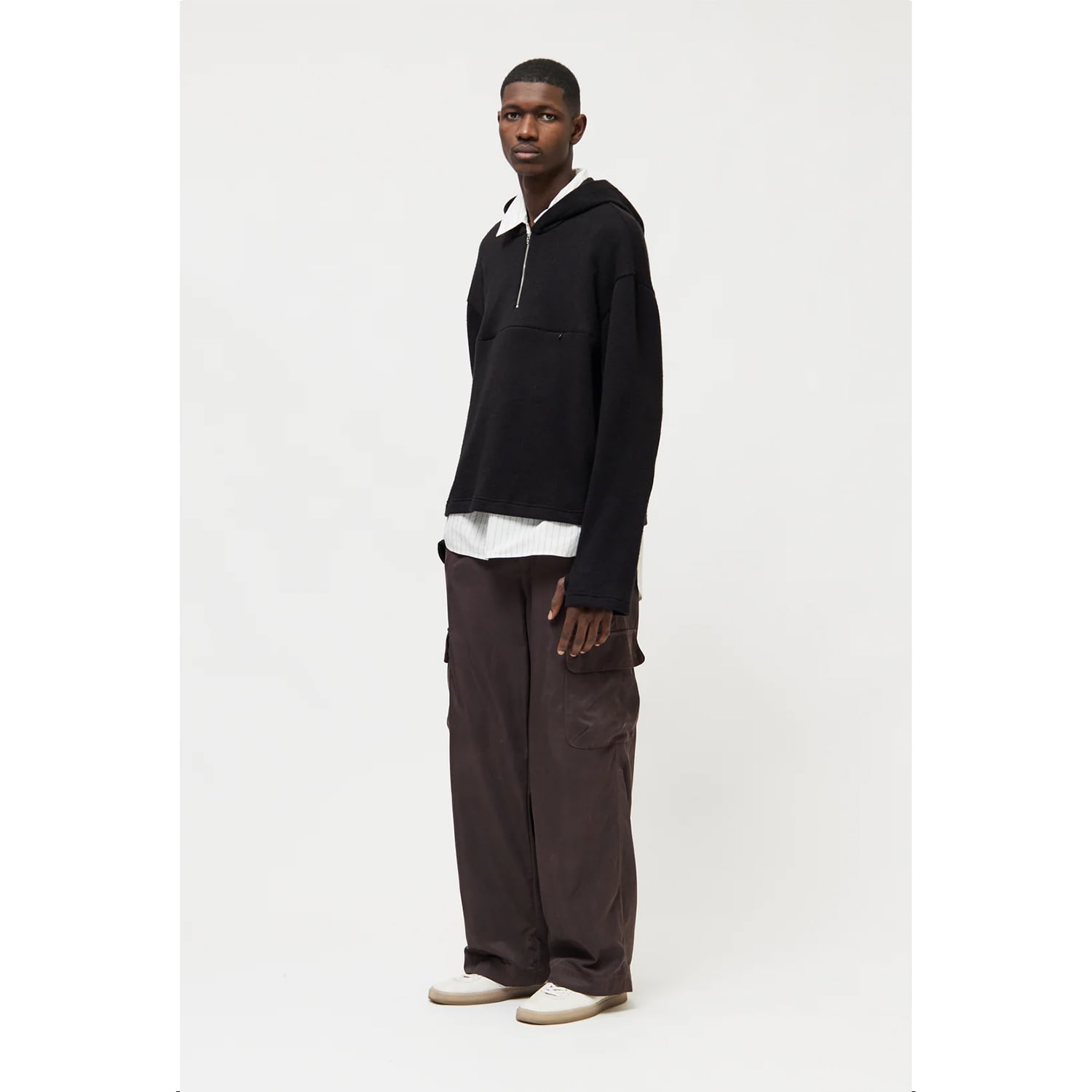 表面は上品な光沢があり、手を通せば柔らかな起毛感が伝わるハーフジップのフーディ。ヴィスコースの落ち感、高い保温性、ポリアミドのふんわり感を絶妙にブレンドした独自素材は、イタリアの職人に支えられた丁寧な仕上がりです。