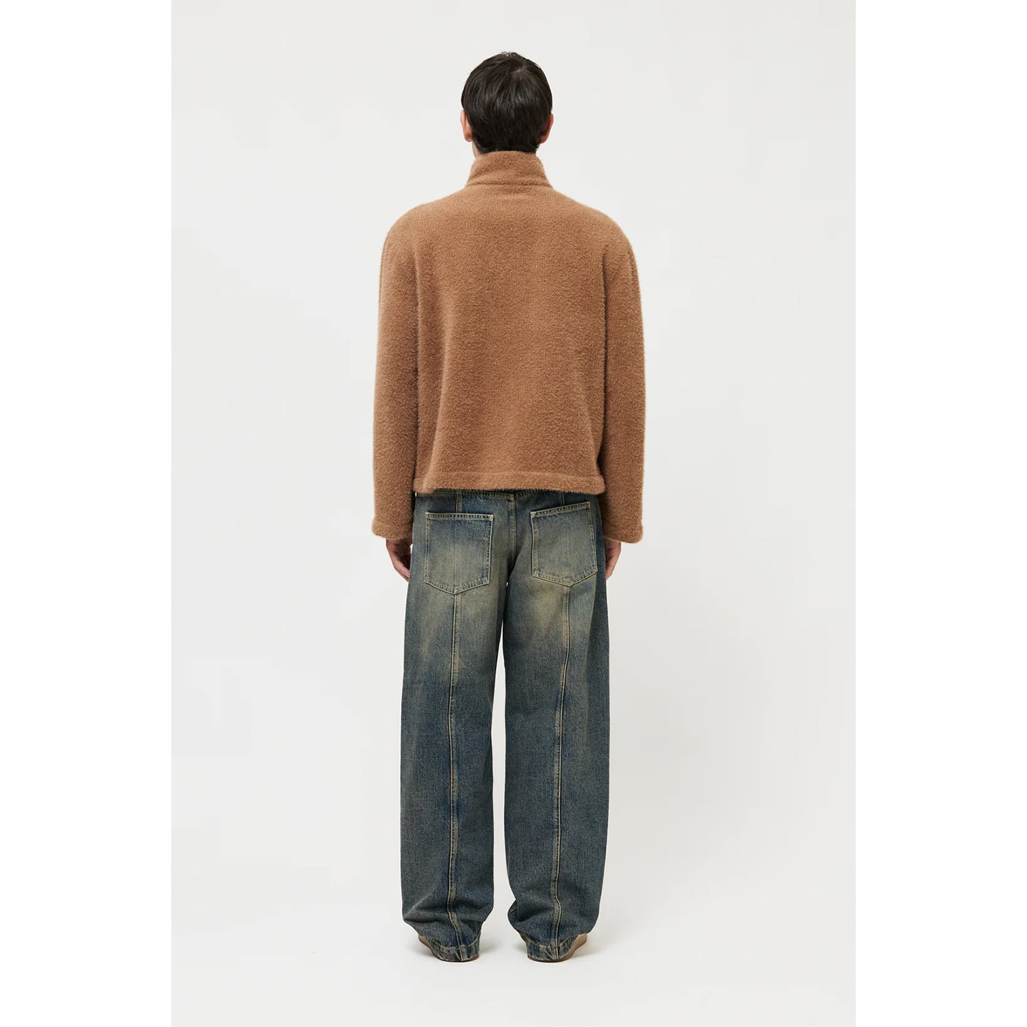 サンド加工による絶妙な色の揺らぎと、前後の切り替えが生む独特な陰影が魅力のワイドデニム。野暮ったさのないリラックスしたストレートシルエットは、力まず自然でありながらも、どこか洗練された雰囲気を漂わせます。