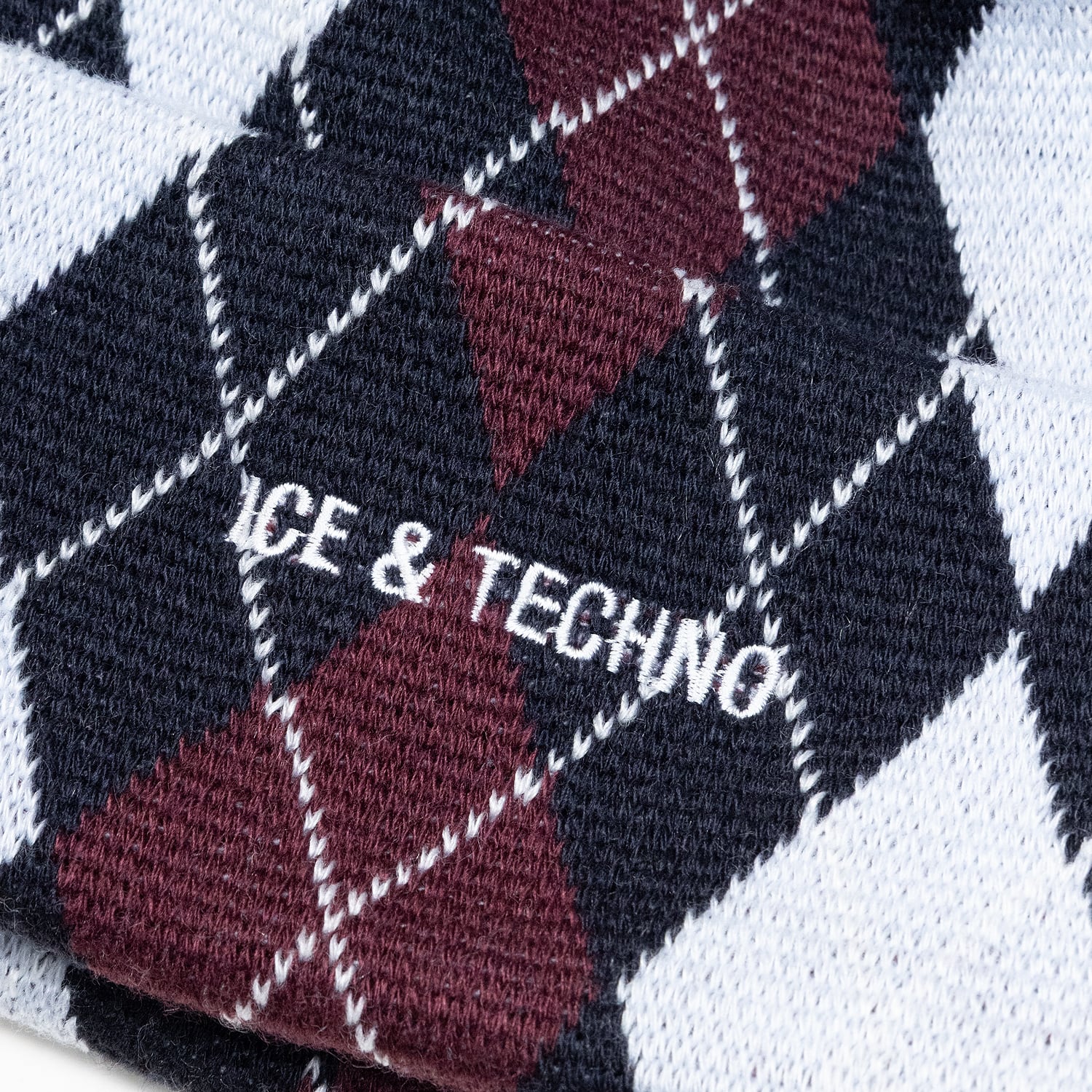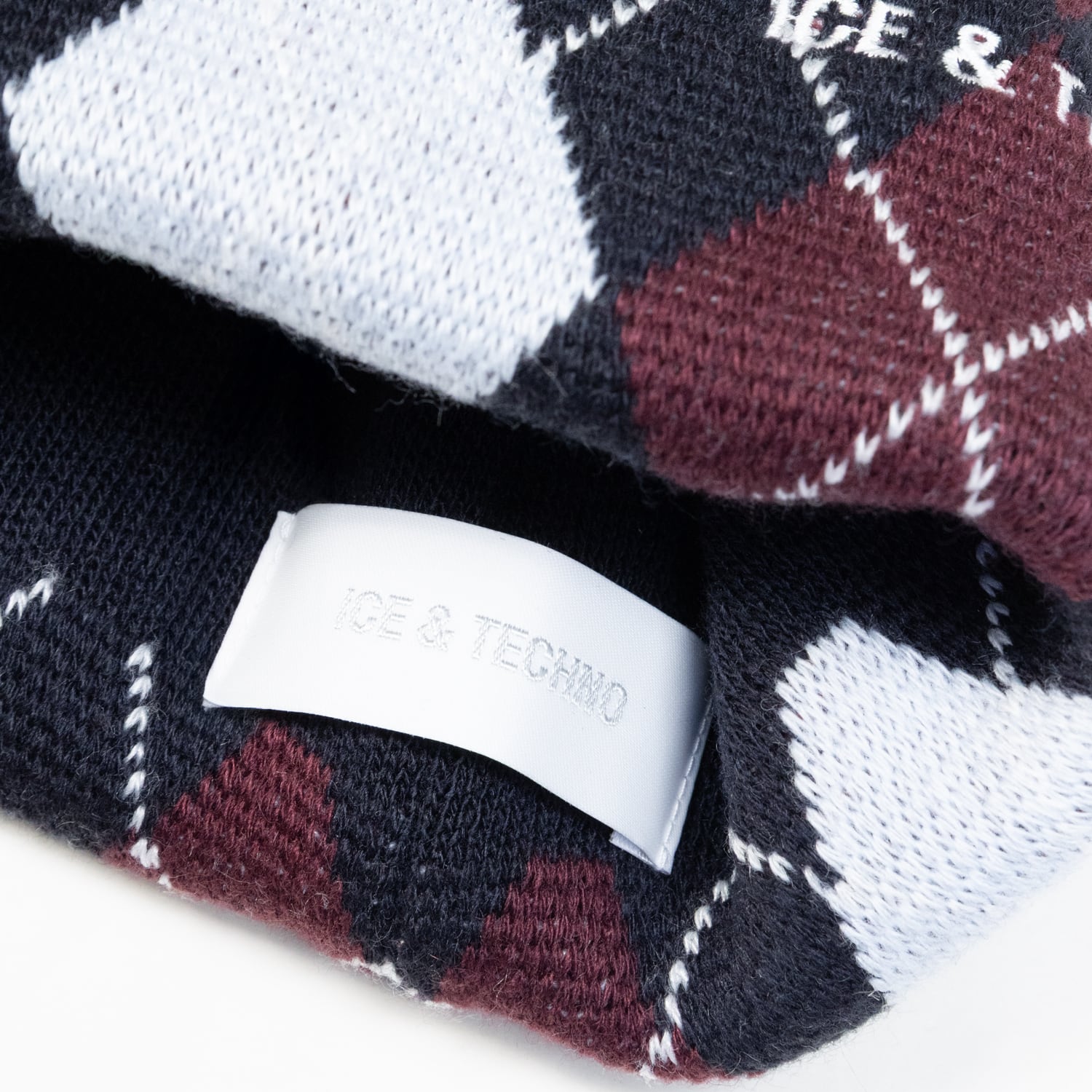 普遍的なアーガイル柄にICE & TECHNOのロゴ刺繍を配置したミニマルなニットビーニー。