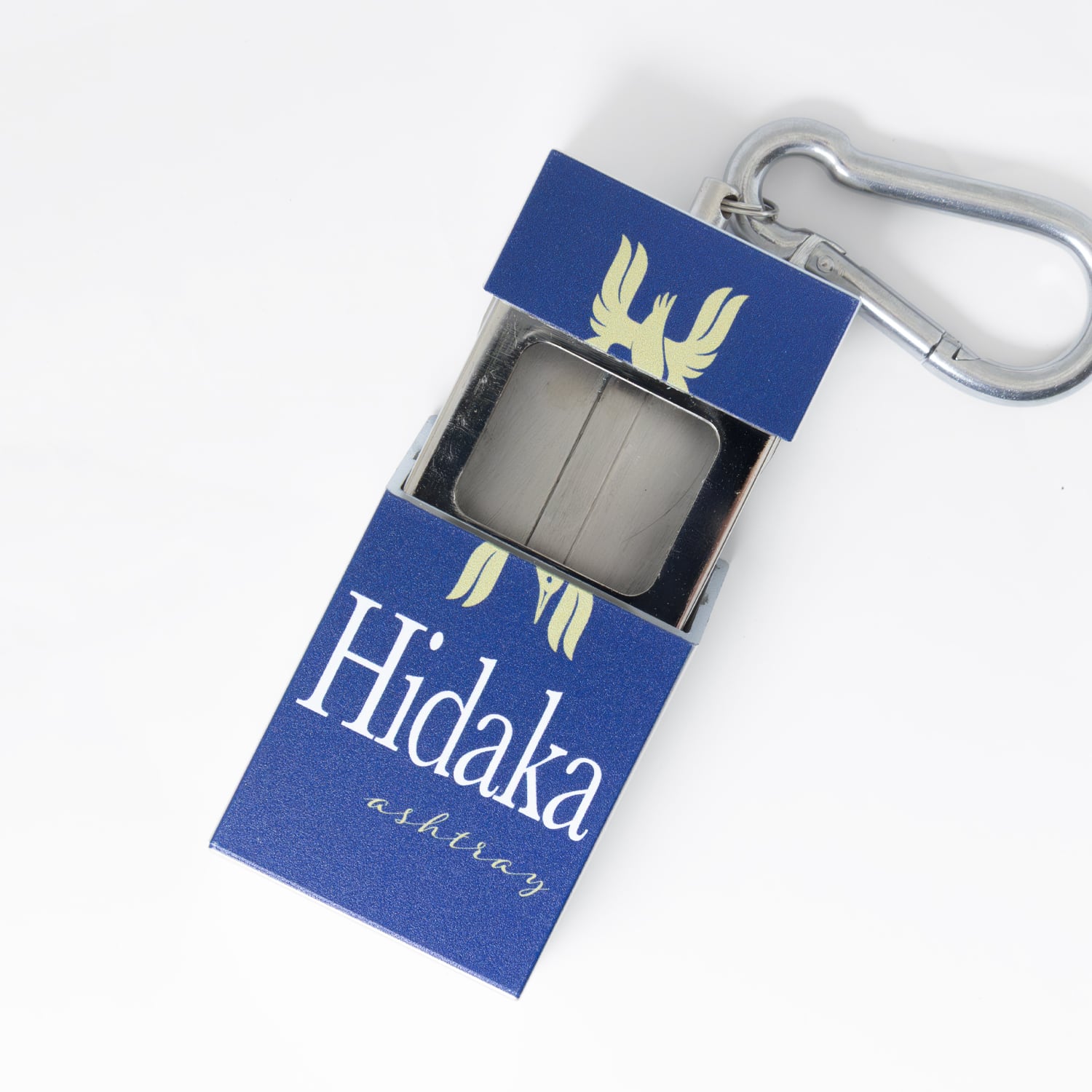 Peaceのパッケージをサンプリングした携帯灰皿。Peaceの象徴である鳩のシンボルが"H"のように変異したデザイン。カラビナを上に引き上げることで開閉可能です。灰皿だけでなくピルケースやチャームとしてもお使いいただけます。