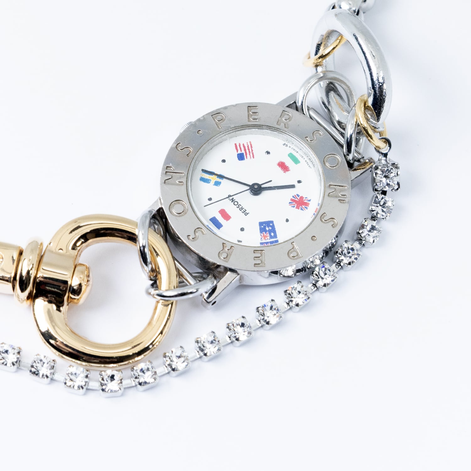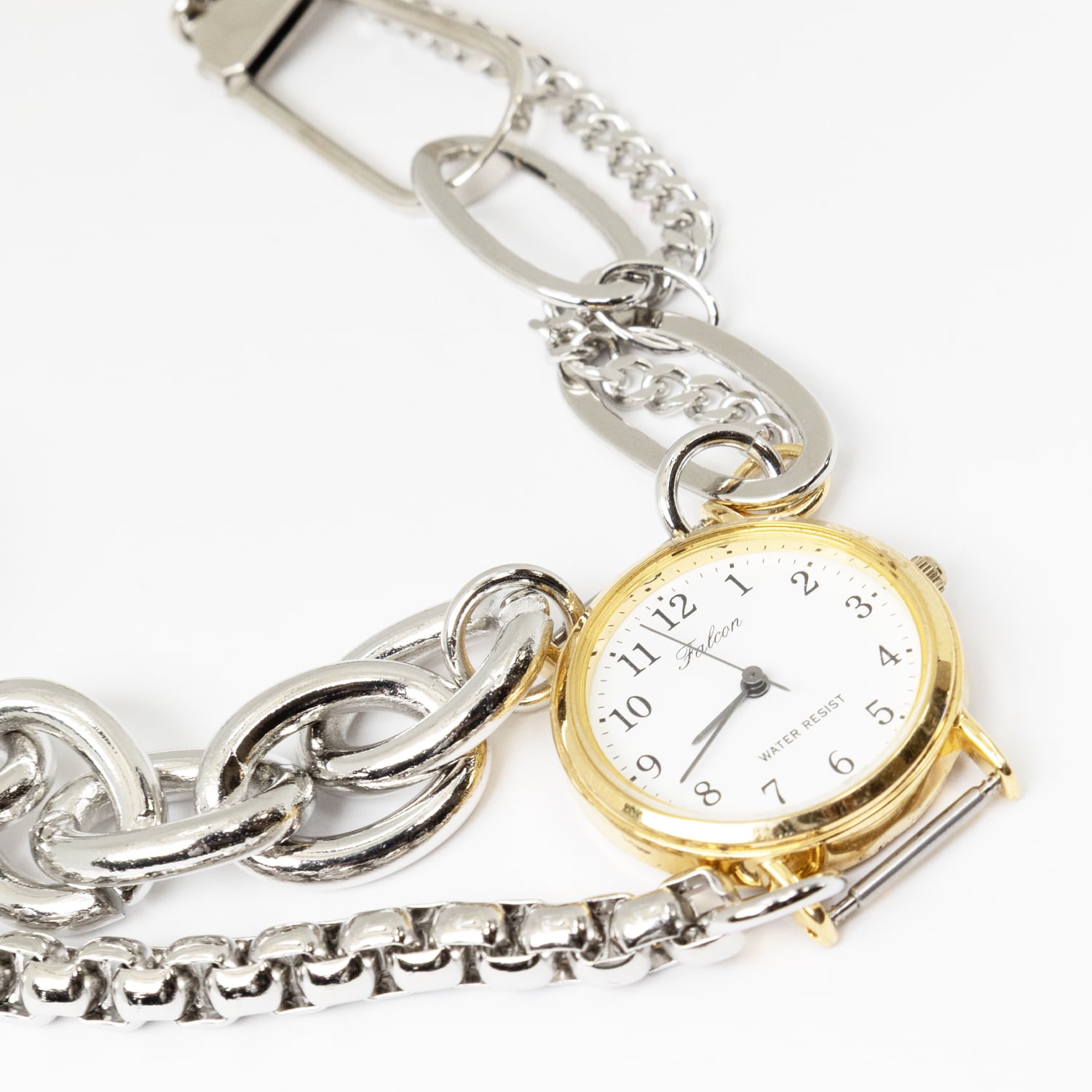 チェーンの裁ち落としや余剰分の金具、壊れた時計などアトリエ内で眠っている端材を用いて制作したユニークピースのパンツチェーン兼ネックレス。本来無価値である物体を用いて再構築されたジュエリーは着用者に新たな視点を与えます。1点ずつハンドメイドで組み上げた躍動感のあるデザインです。