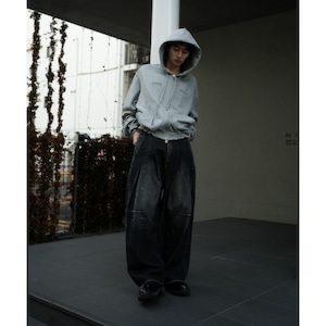 シンヤコヅカを象徴するバギーシルエットにバックヨークや紙パッチ、コインポケットといったデニムの意匠を融合させたORDINARY CITY BAGGY。