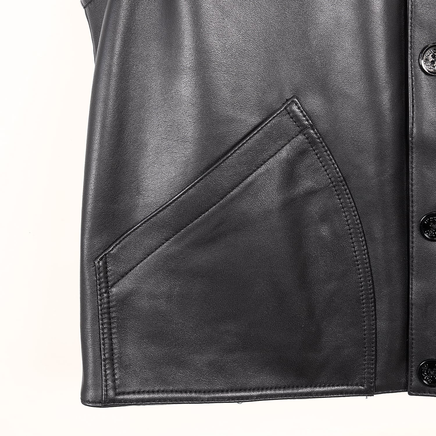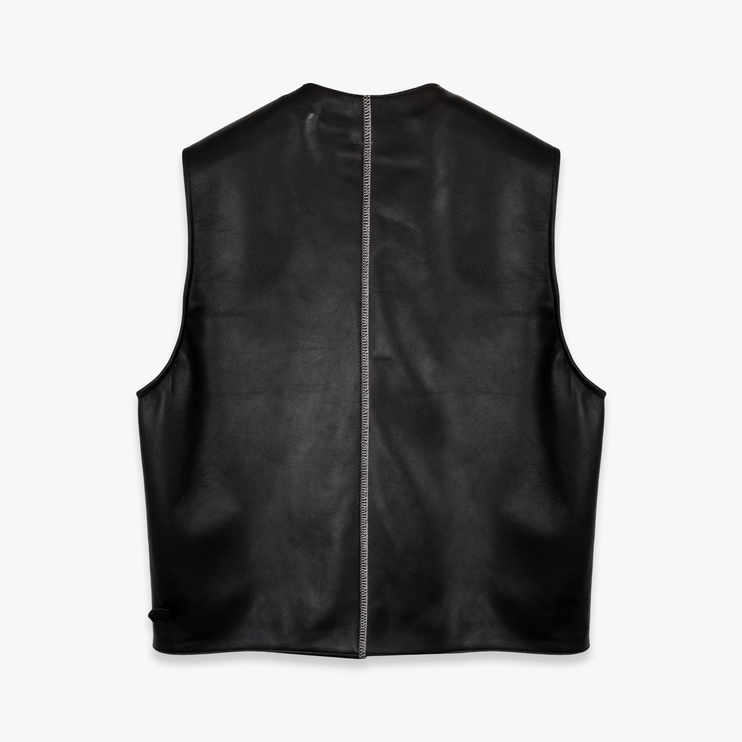 ミニマルなクルーネックのライン、曲線的なポケット、背面のセンターシームなど、流麗なカッティングでレザーの強さにSHINYAKOZUKAらしい洗練さを添えています。