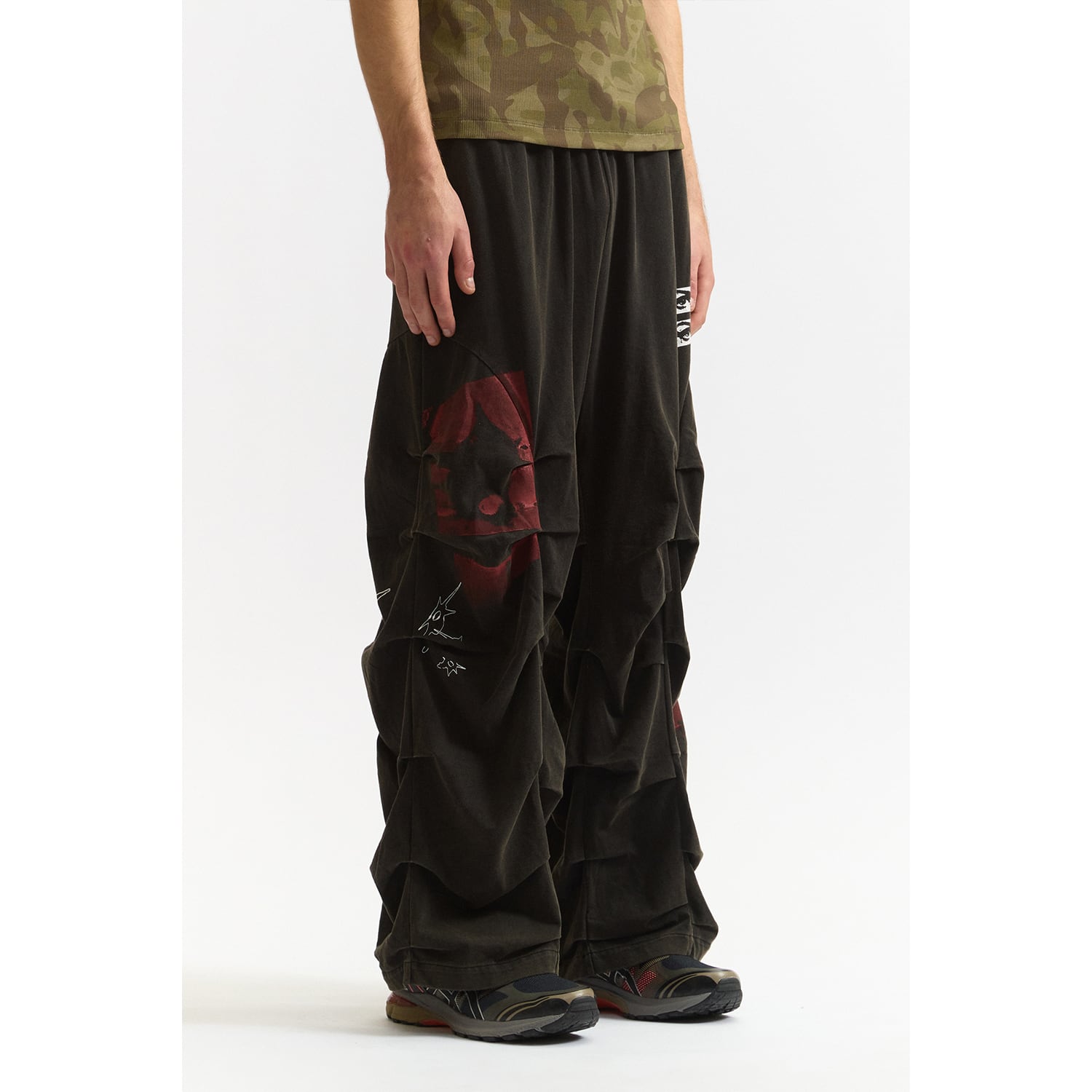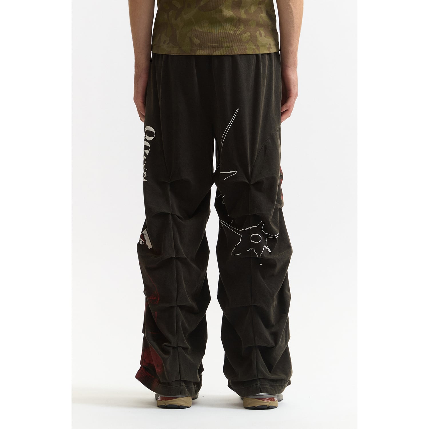 立体的なギャザーディテールが目を引くワイドスウェットパンツ。