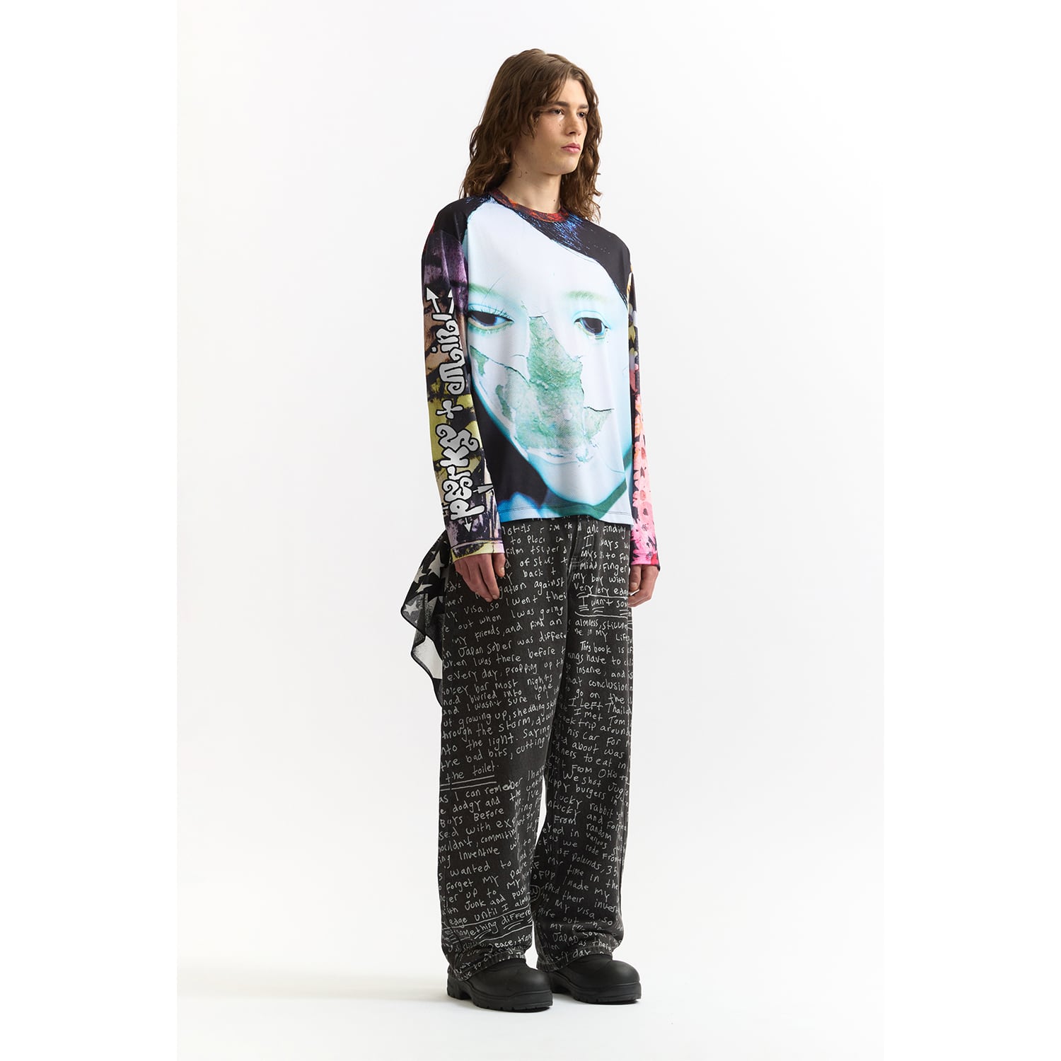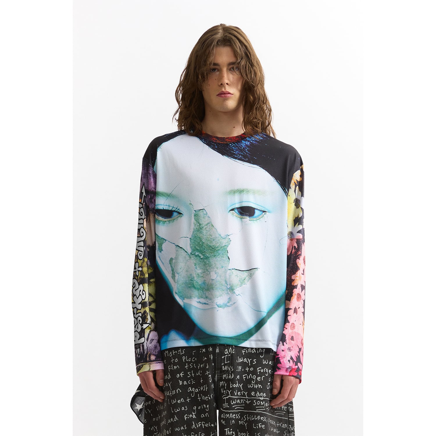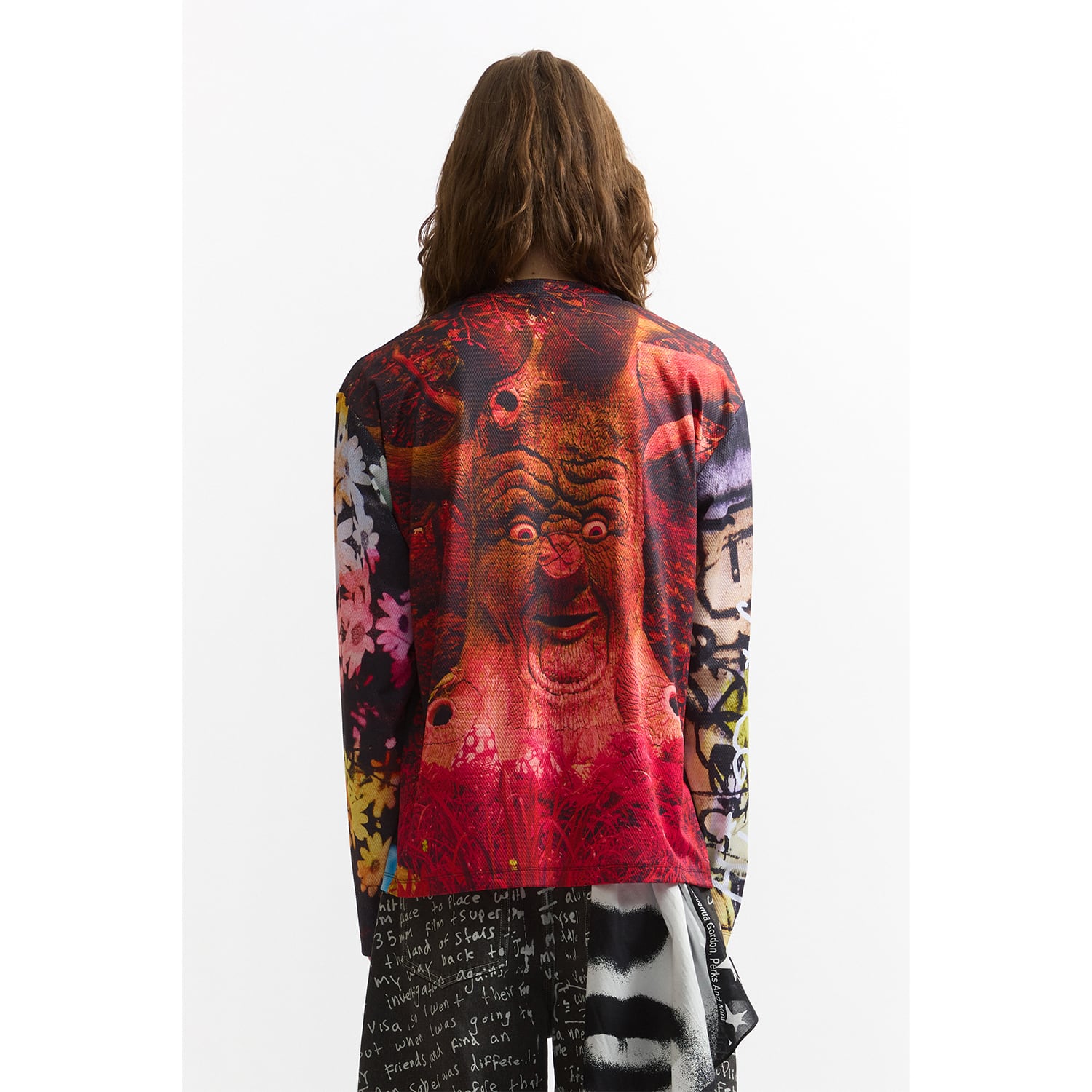 DazedやI-Dなど、カルチャーシーンの最前線で活動する写真家・映像作家のJoshua Gordon(ジョシュア・ゴードン)のアートワークを全面に配したメッシュロングスリーブ。