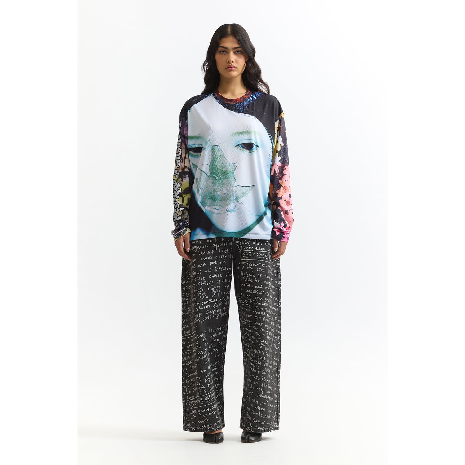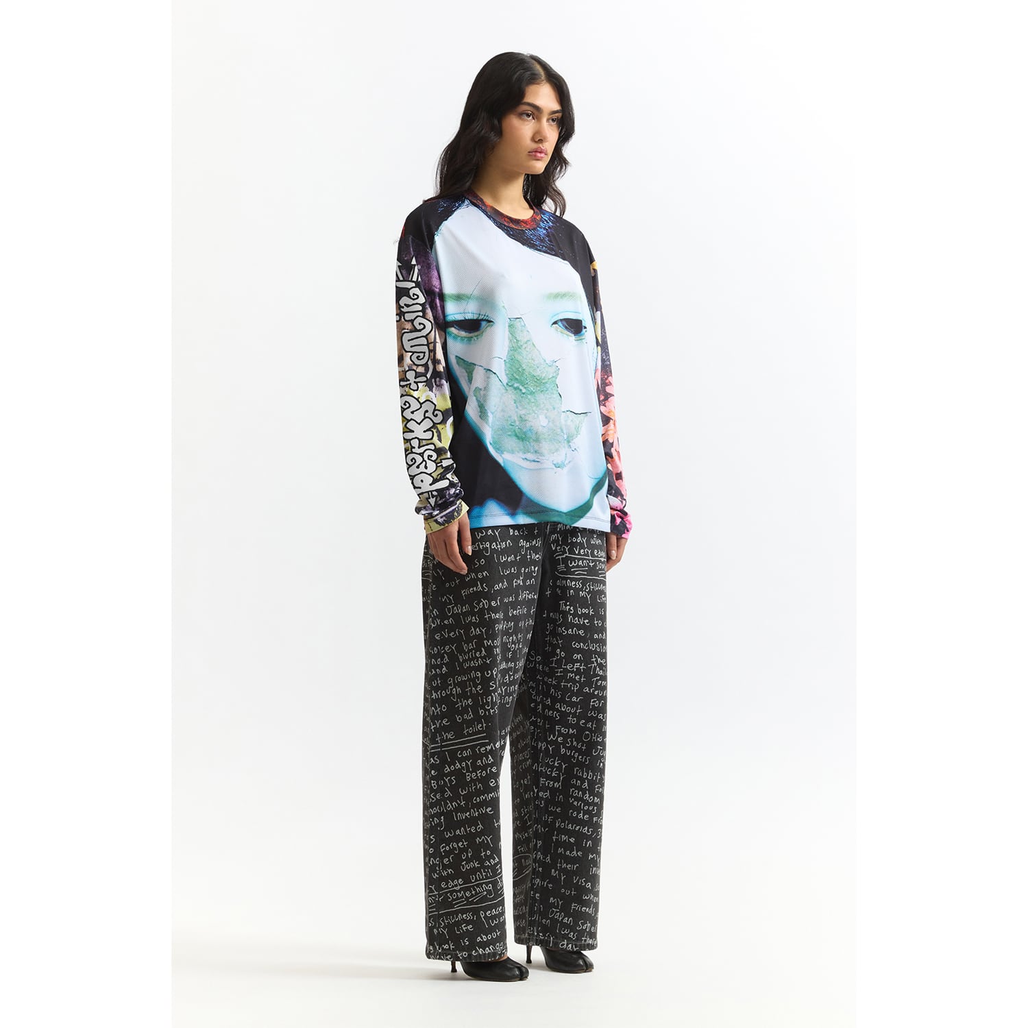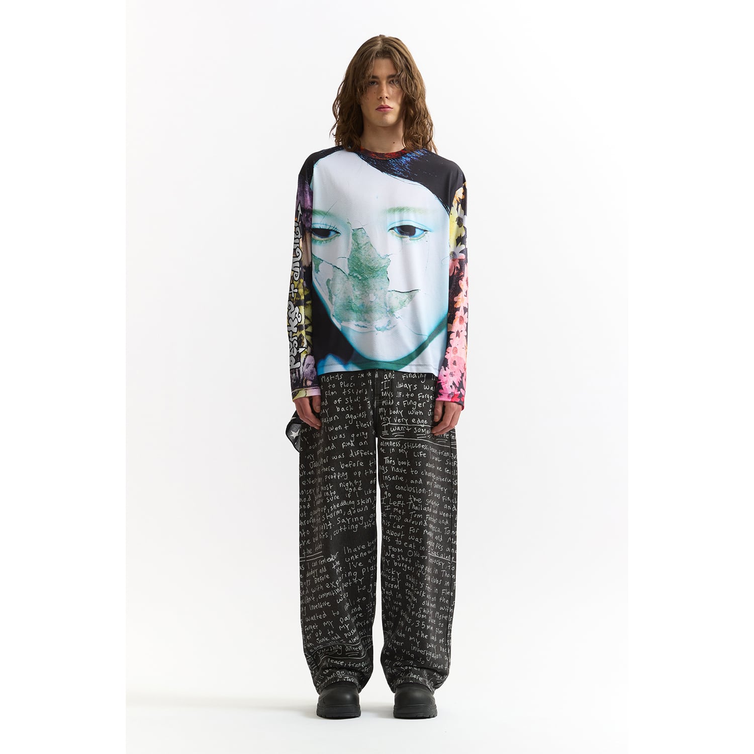 DazedやI-Dなど、カルチャーシーンの最前線で活動する写真家・映像作家のJoshua Gordon(ジョシュア・ゴードン)のアートワークを全面に配したメッシュロングスリーブ。