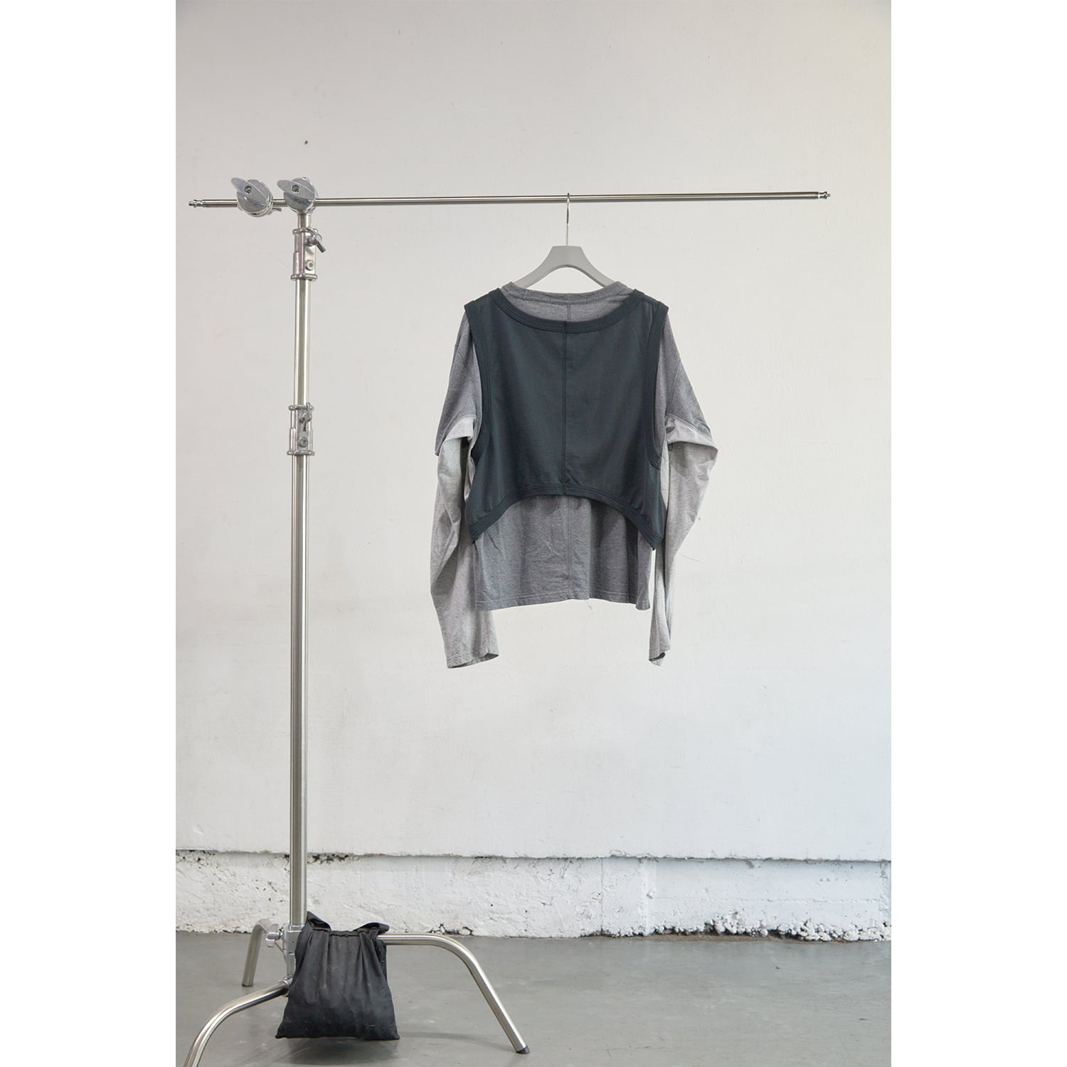 50/2コットン天竺を使用したクロップドレングスのマルチレイヤードTシャツ。