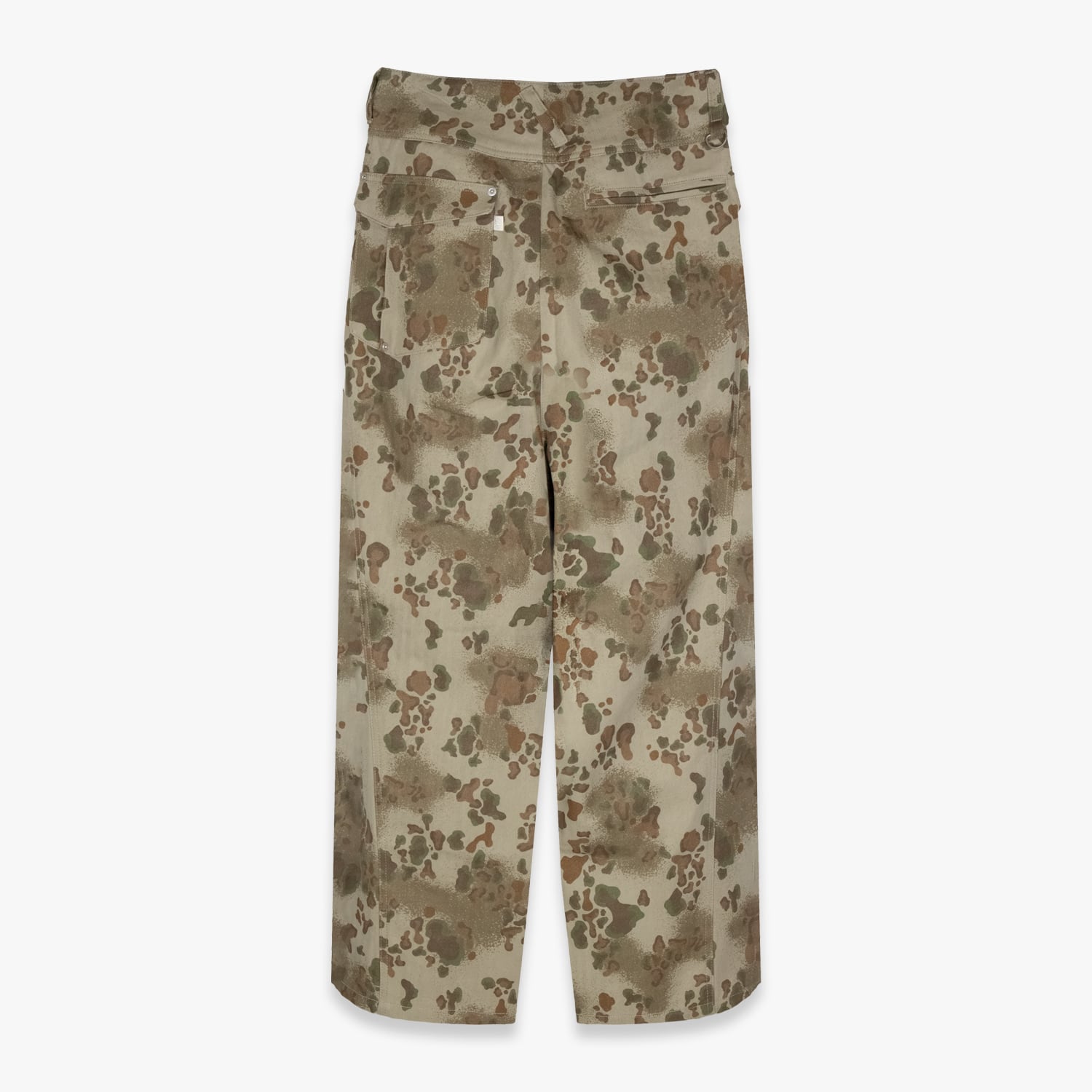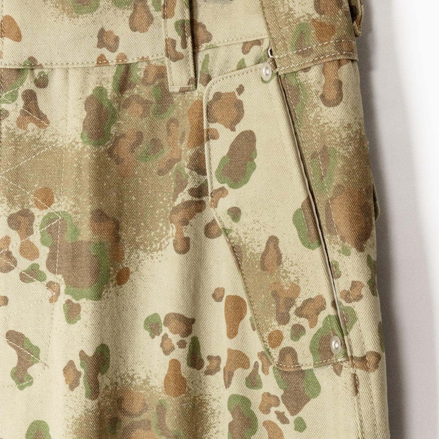 ブランドオリジナルのカモ柄を落とし込んだバギーチノパンツ。ワタリにたっぷりとゆとりを持たせながら、裾に向かってナチュラルにすぼまるシルエットです。