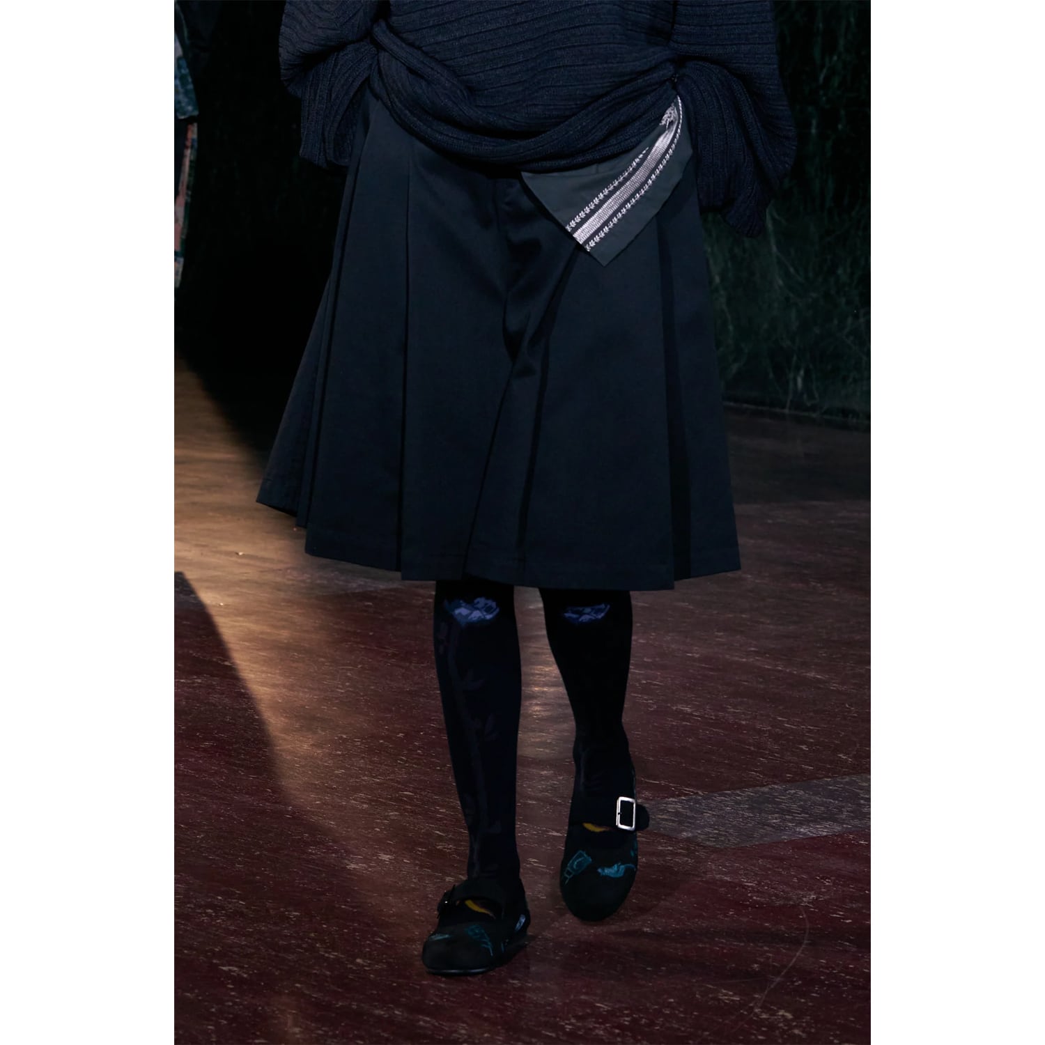 今シーズンを象徴するカーネーションと月のモチーフをのびやかに編み込んだハイソックス。
