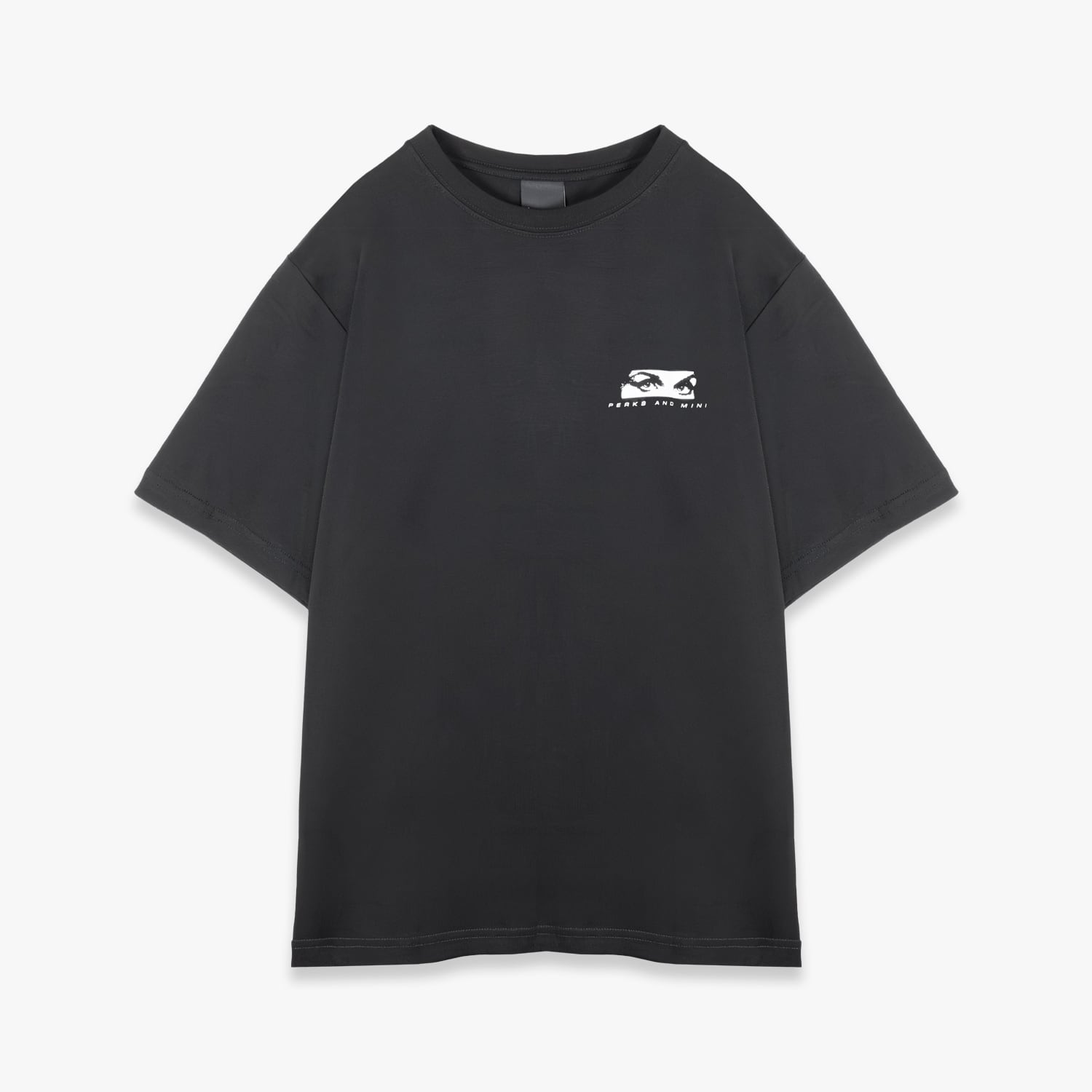 定番シルエットの半袖Tシャツ。バック裾に小さなデザインラベル。フロントに「P.A.M. Maiden eyes」のスクリーンプリント。バックに「P.A.M.」のコラージュアートワークのスクリーンプリント。