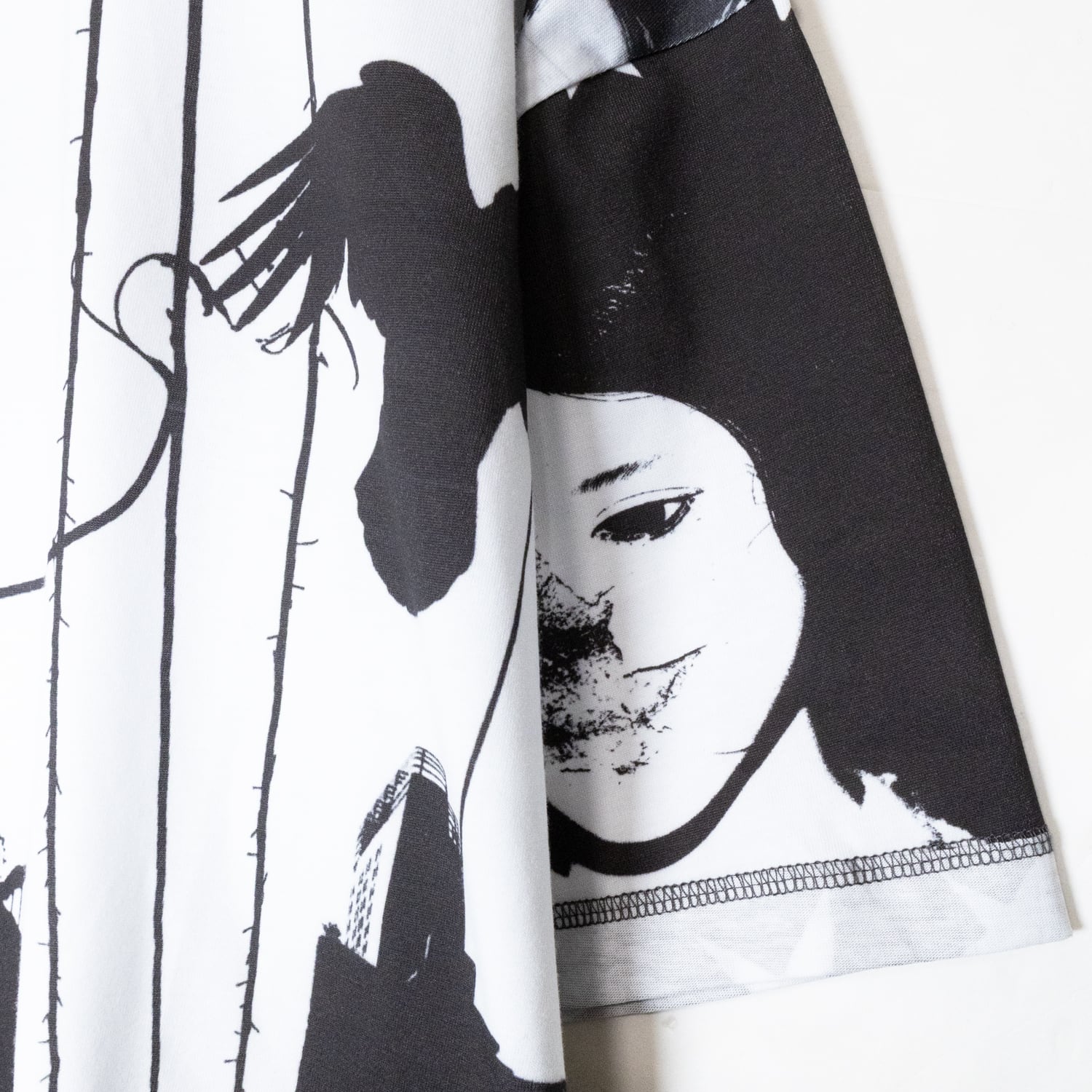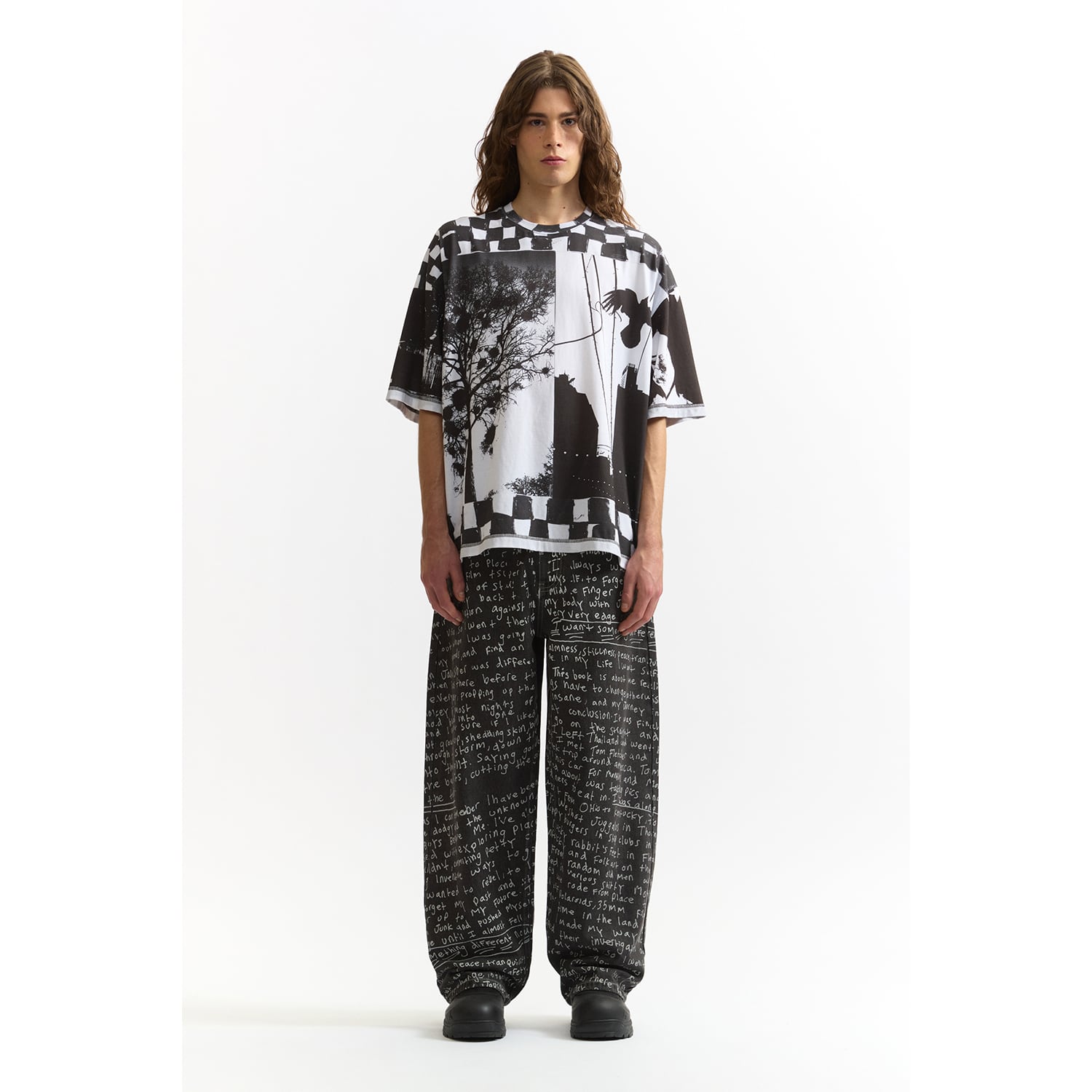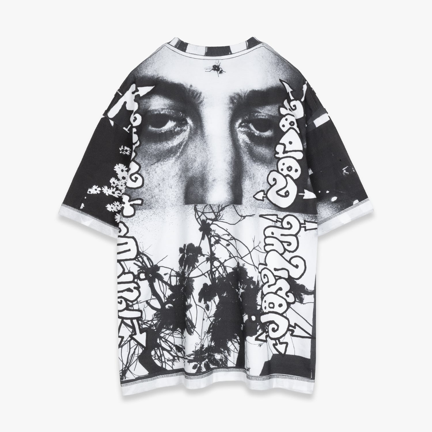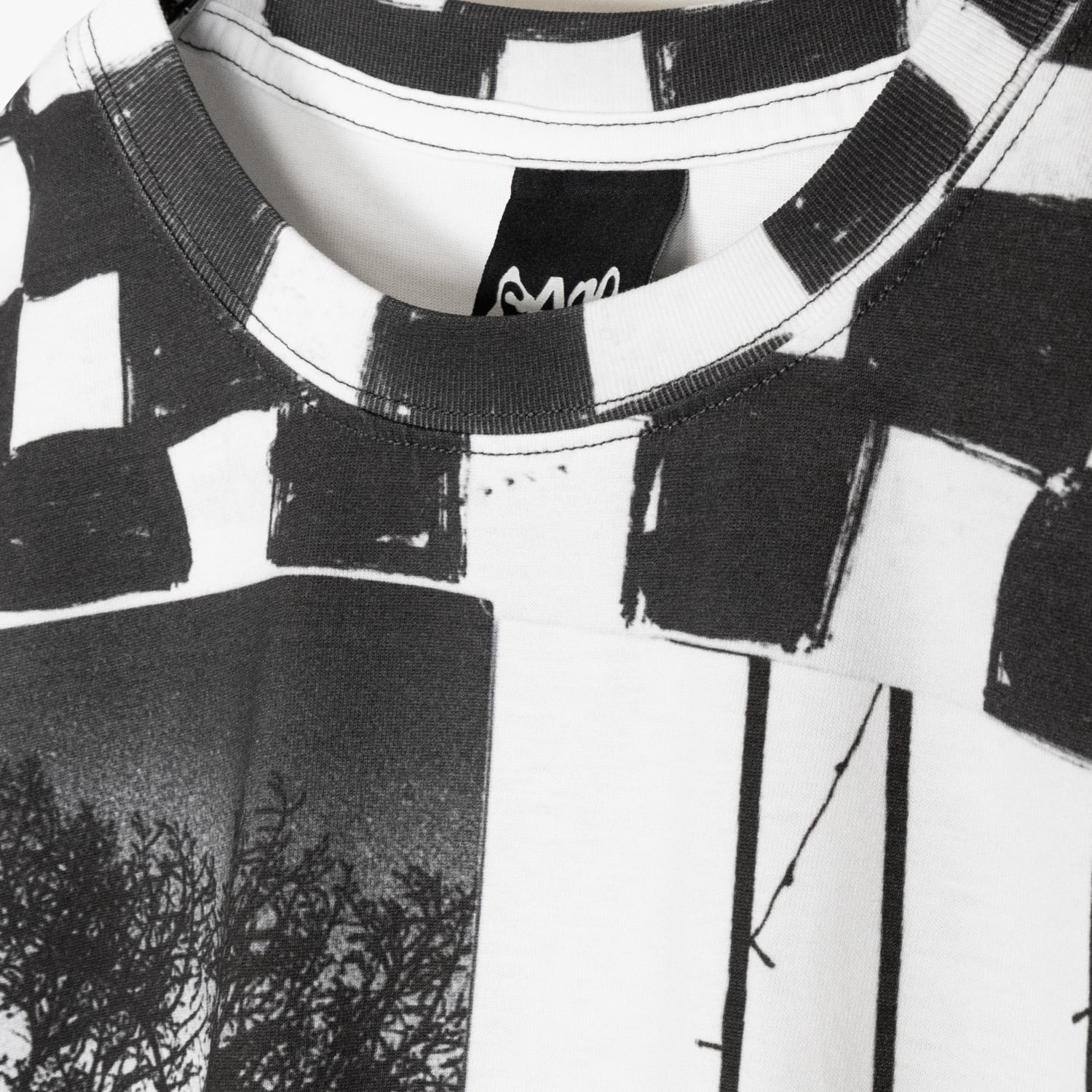 オーバーサイズでリラックスフィットの半袖Tシャツ。袖とボディはリバースヘム。ネックのリブにも意図的にプリント。全面に「Joshua Gordon」によるアートワークをデジタルプリント。