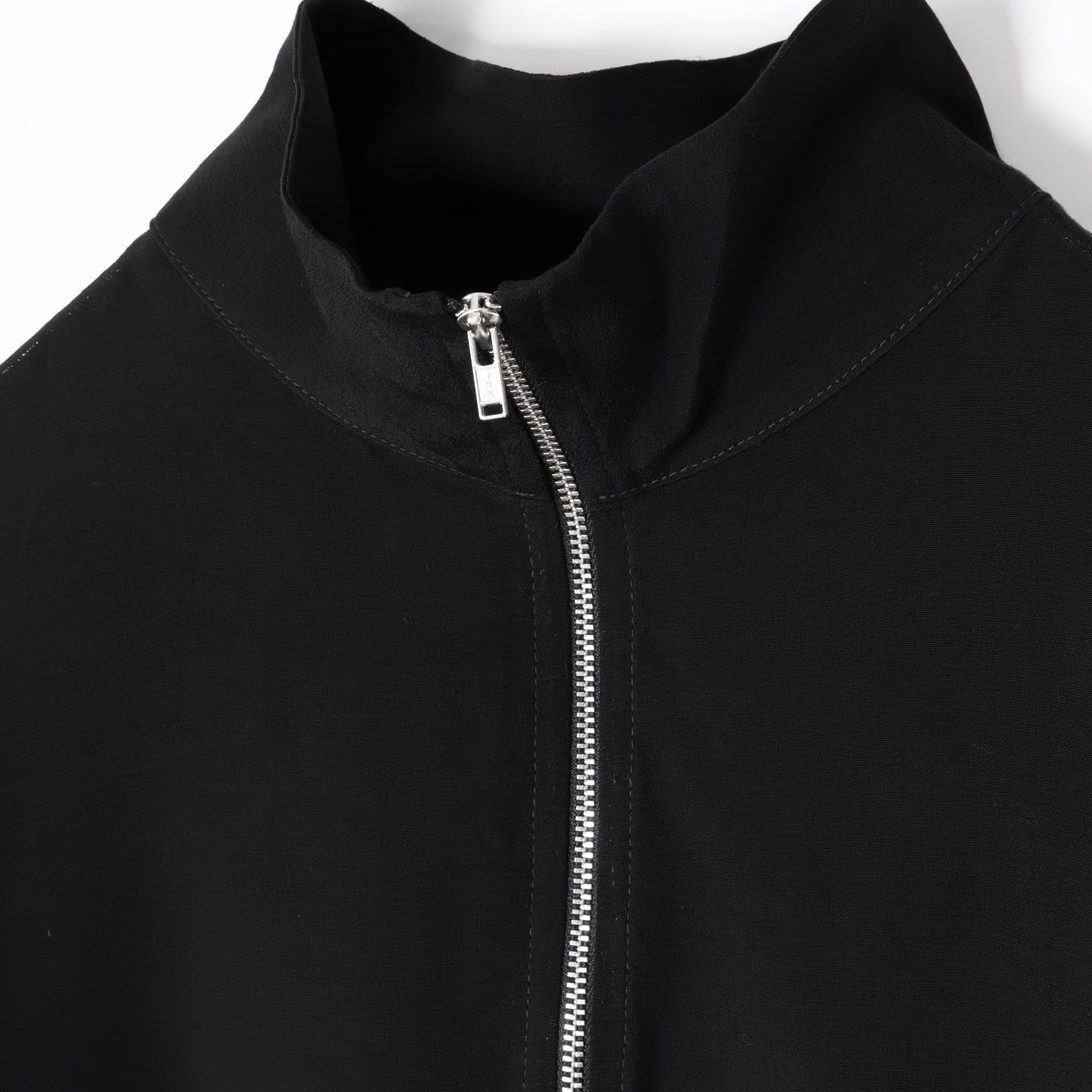 ジップを上まで閉めることで現れる凛としたハイネックのシルエットが特徴で、一枚での着用はもちろん、インナーとしても確かな存在感を放ちます。