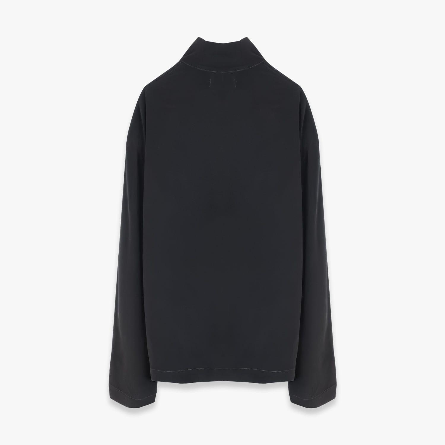 ハーフジップとハイネックでモダンな印象に仕上げたジップシャツ。