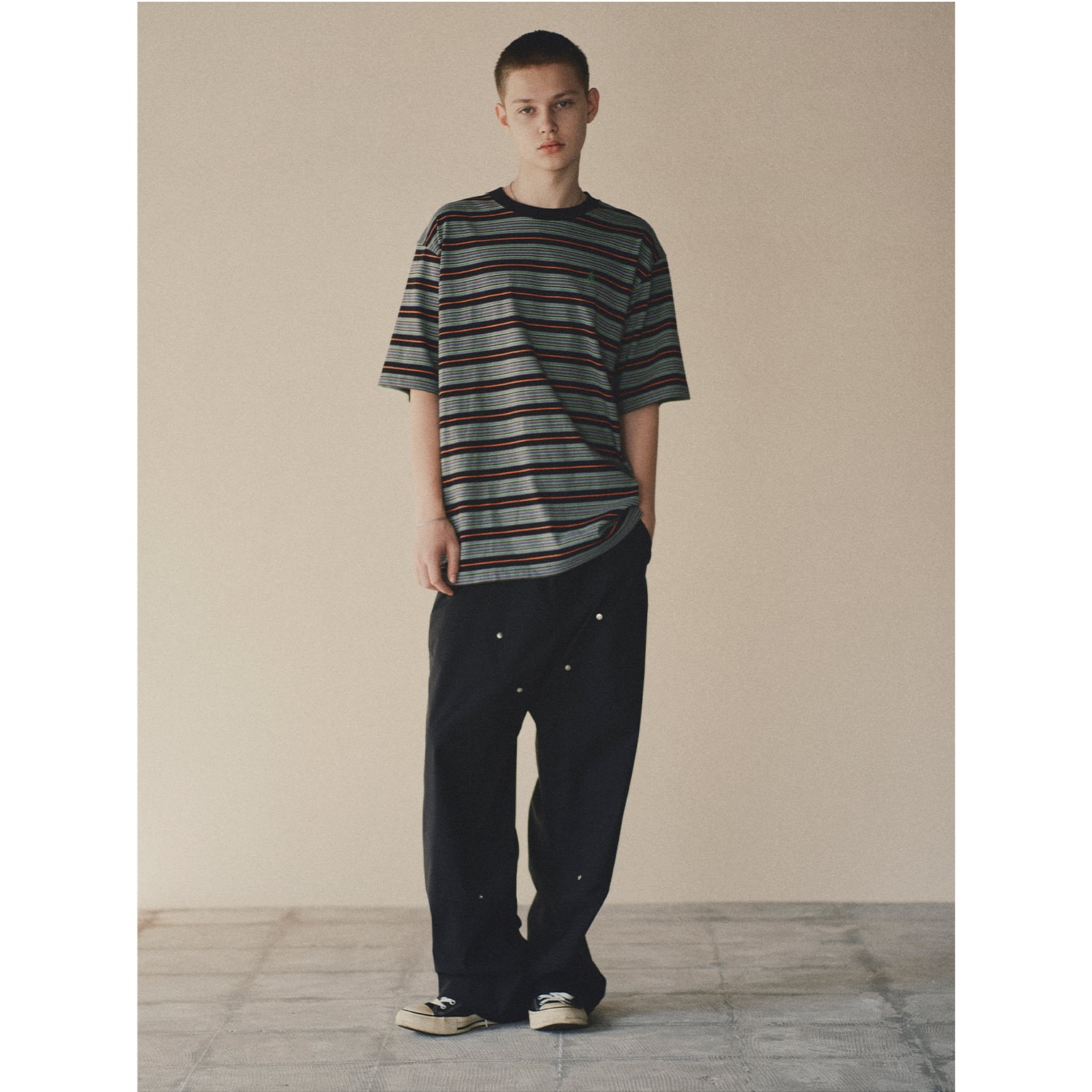 スタンダードなフィットと適度な丈感でレイヤードにも重宝する一枚です。