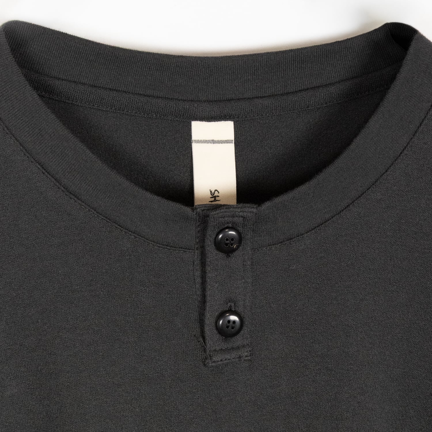 スリーピングシャツをベースにしたクラシックなヘンリーネック。デンマークの画家であるハンマースホイの影をイメージした墨黒に近いチャコールカラーです。
