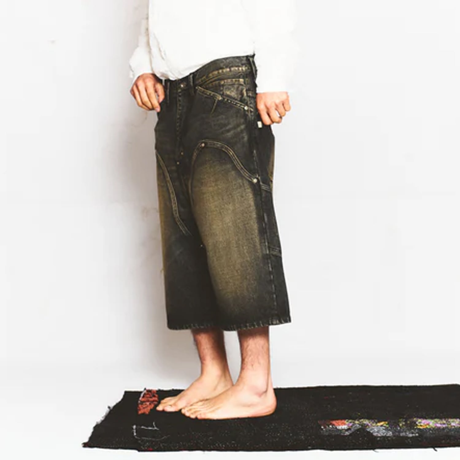 FAKE AS FLOWERS / FAF 26SS NEWCOMMUNE BAGGY DENIM SHORTS (BLACK)