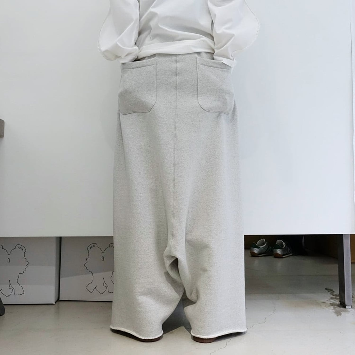 股上を極端に深くした、ウルトラサルエルシルエットのスウェットパンツです。