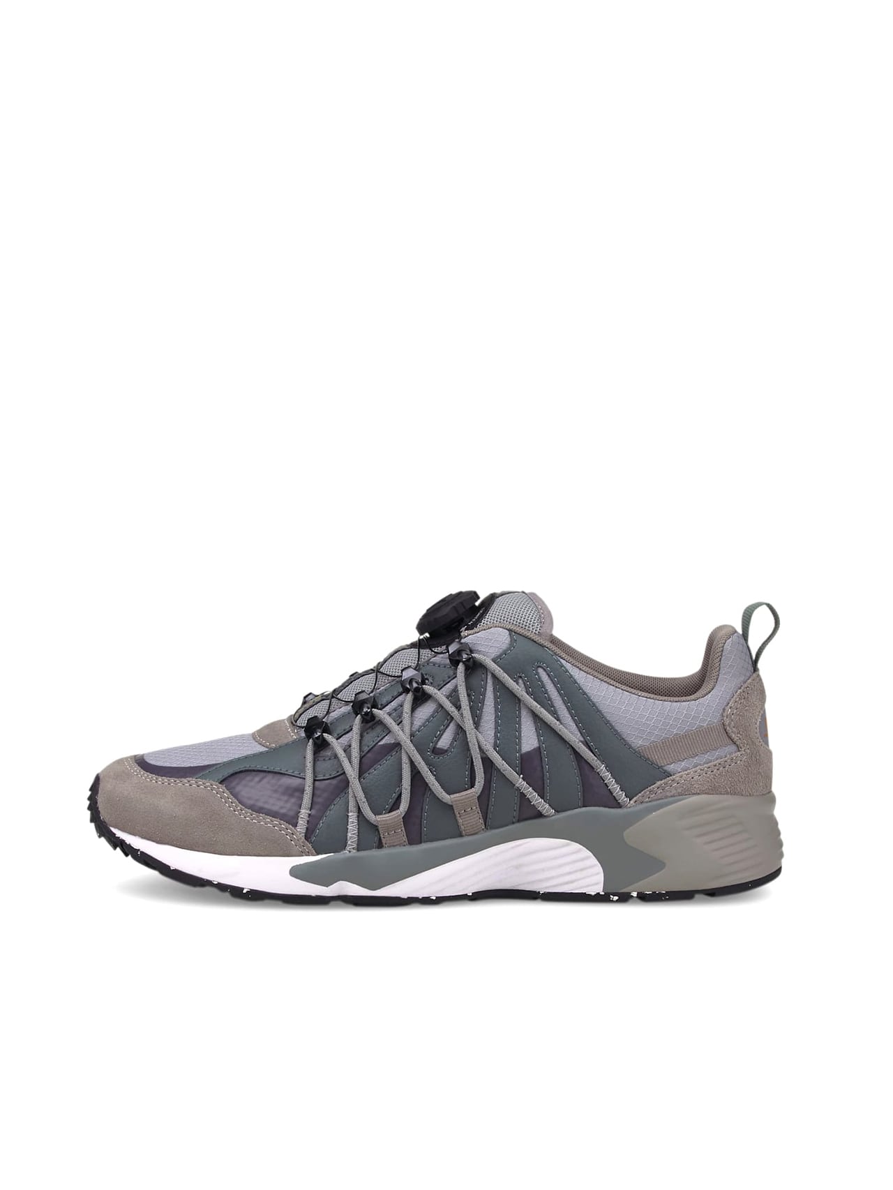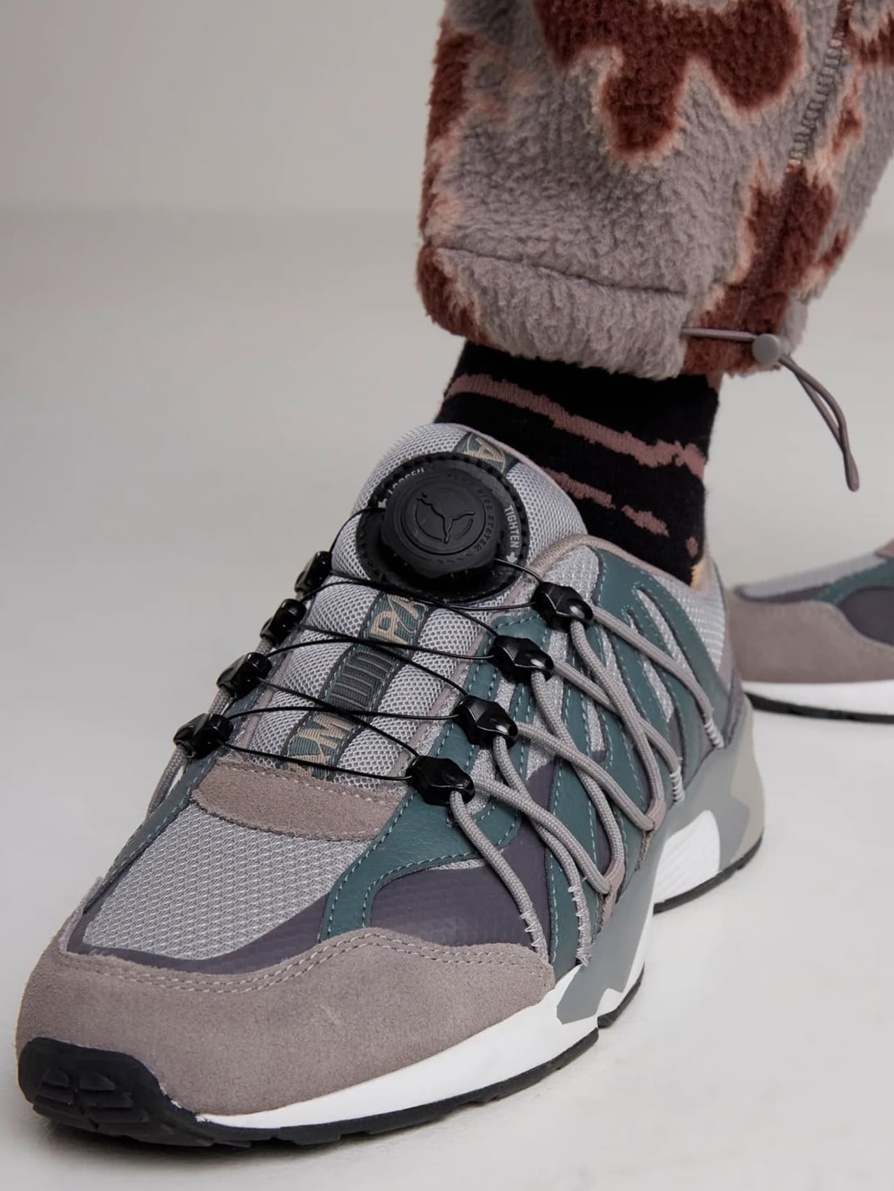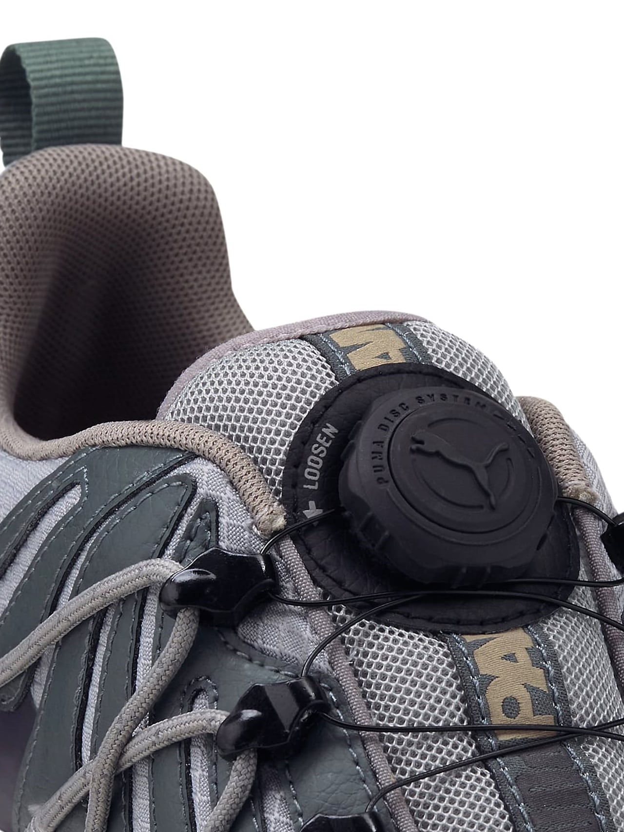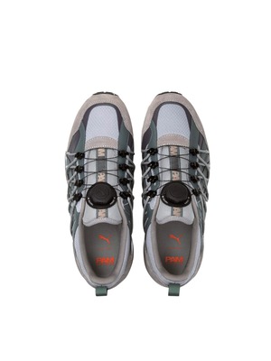 プーマ独自のテクノロジーを搭載したランニングシューズ「DISC(ディスク)」。1990年代にランニングシューズのクッショニング機能として発表されたTRINOMIC(トライノミック)ソールを採用。着地時の衝撃を緩和し、快適な履き心地を提供します。ダイヤルを回すだけで簡単にフィット感の調整を行えるDISC FITは、見た目にもアクセントを加えてくれます。普段のコーディネートにも取り入れやすいデザインです。