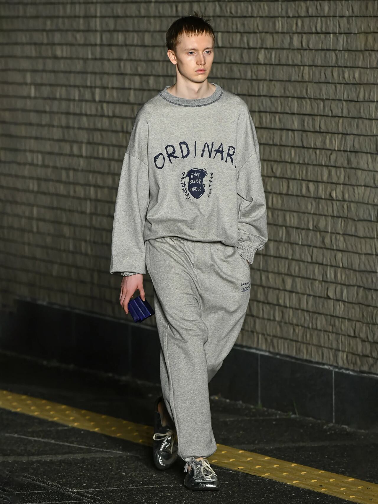 股上を大胆に落としたジョガーパンツ。さり気ない程度にテーパードを効かせ、野暮ったさのないスタイリッシュなシルエットに仕上げています。ウエストと裾はドローコードで調整可能。人間の生活に不可欠な'Eat, Sleep, Dress'(食う、寝る、着飾る)の刺繍。生地はハリ感のあるスピーマコットンの度詰裏毛。