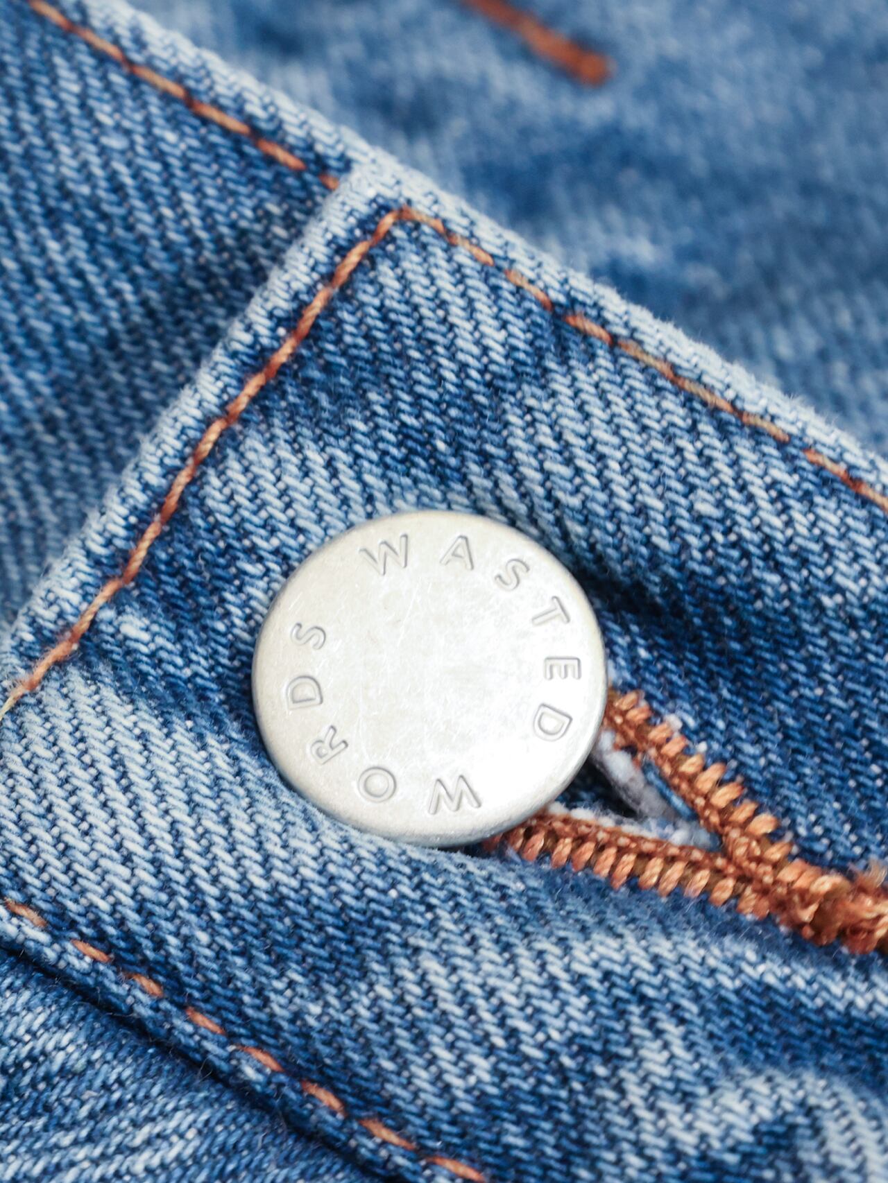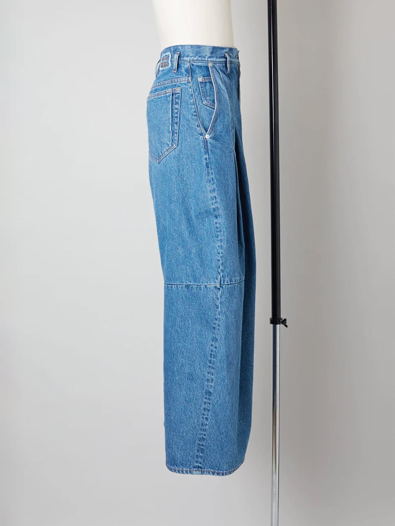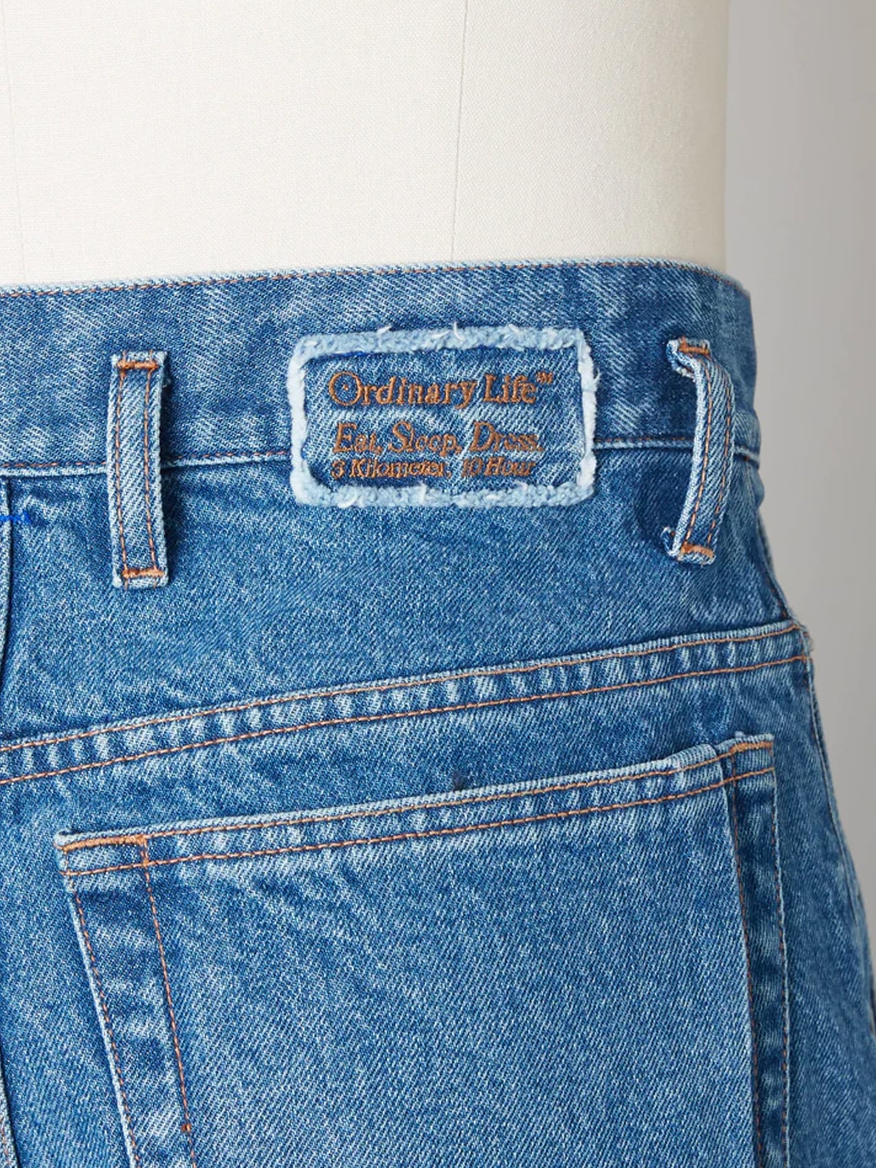 ヨークやパッチポケットなど、よりデニムパンツらしいディテールを落とし込んだORDINARY CITY BAGGY。後ろのパッチに刺繍されている1km、0.2hは「家から1kmのスーパーに10分立ち寄るときに着る物」という意味合いです。生地は13.5ozのデニム。